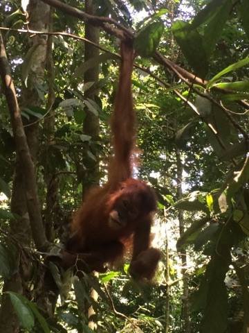 I was pleasantly surprised by the sheer abundance of nature we saw during the 3 hours. I had joined up with a group of 3 who were doing a 2 day trek and I would leave them later to return to my guesthouse hammock. We firstly happened upon a rehabilitated mother orang-utan and her 3 year old child, who showed off his newly acquired acrobatic skills to his delighted audience, just feet above our heads, whilst she sat supervising lazily some distance away. After 15 minutes or so of tree swinging, cartwheels and general showing off, she summoned him to follow as she made her way back into the depths of the jungle. Leaving us with big happy smiles, and a million leafy photos.