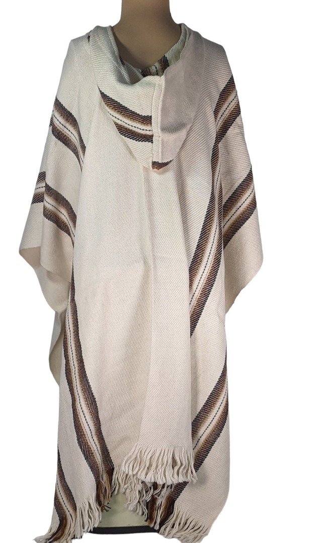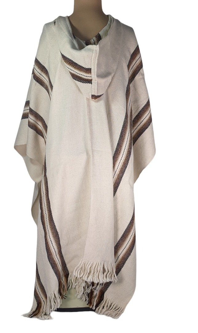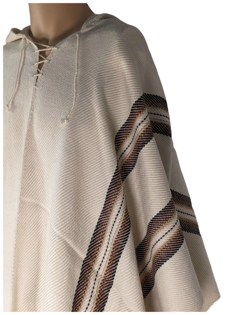 Baby Alpaca Poncho -Men’s Fair Trade jumper wool cloak cape Jacket White