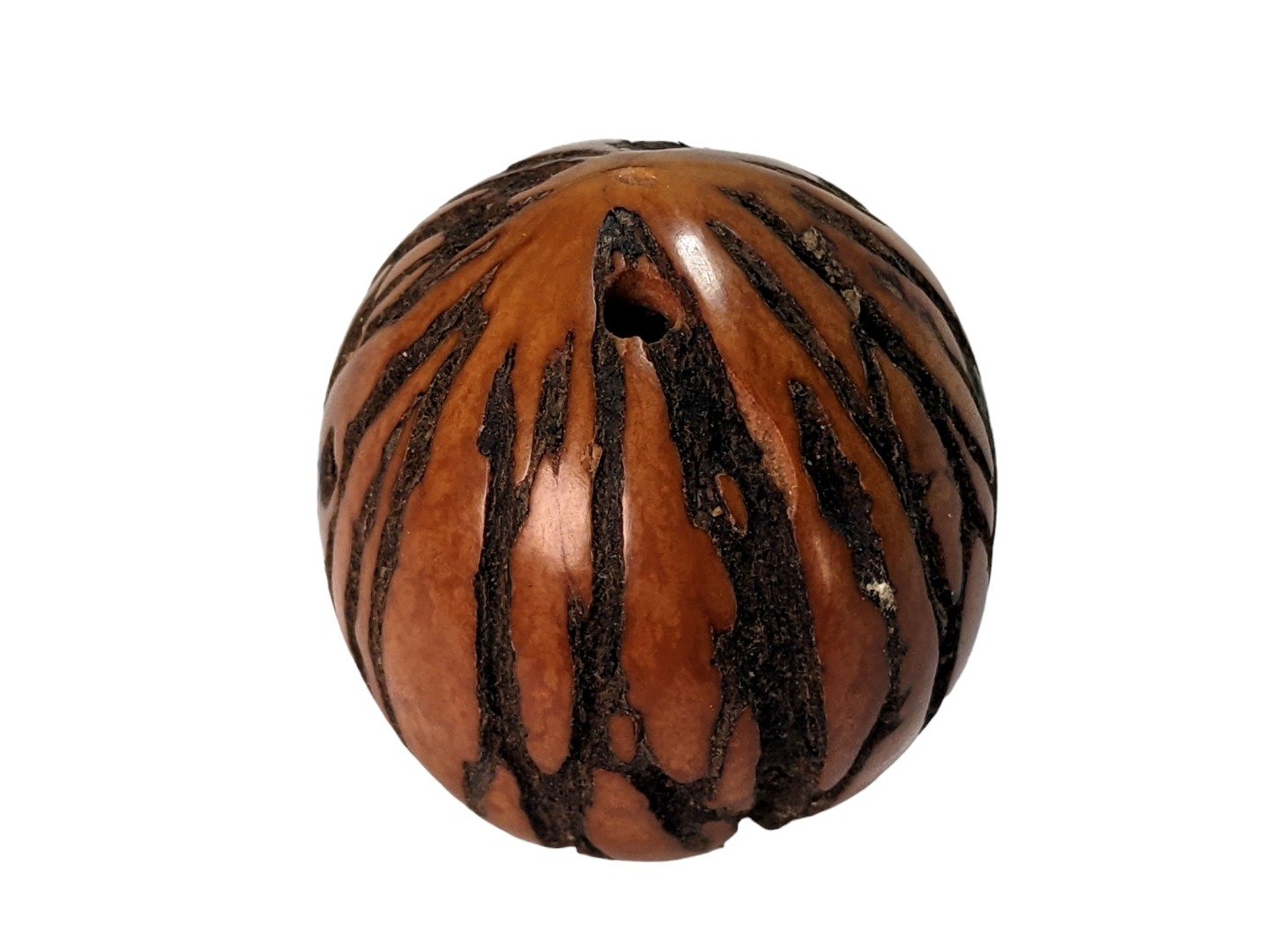 2 x Fair Trade Ecuador Tagua Nut Rainforest Huge Seed Tocte (ANDEAN WALNUT) Price is for 2 of these rare nuts The nut is drilled through so it can be threaded. Dimensions A Tocte seed bead has a diameter of approx. 30-40mm. It is about the size of a walnut and also has a similar shape. The seed bead is brown with black lines. Tocte seed beads come from the rainforests of Peru and Ecuador. These are from an Ecuadorian NGO who produce sustainable harvests, providing much needed income for local people and help keep ancient traditions alive. Please note: This is a natural product. Irregularities in shape and color can occur and are not a quality defect. Dimensions:approx. 30-40mm (per piece) Weight:approx. 9 grams Quantity:2 piece Colour:brown, black Shape:walnut Number of cord holes:1 Material: Dried Nut Background The Tocte nut (Juglans neotropica) or Andean walnut, locally known by the names of nuez del Nogal or nuez del Tocte, is an exquisite Andean nut and is highly prized in crafting and jewellery making The harvesting, cleaning, drying and nut extraction requires much effort and dedication because it is possibly one of the toughest nuts in existence. It is so strong that it is often used for different crafts that are also very sporadic and at risk of disappearing. For more information on the Andean Walnut or Tocte tree see here:https://www.fondazioneslowfood.com/en/ark-of-taste-slow-food/tocte-nut/