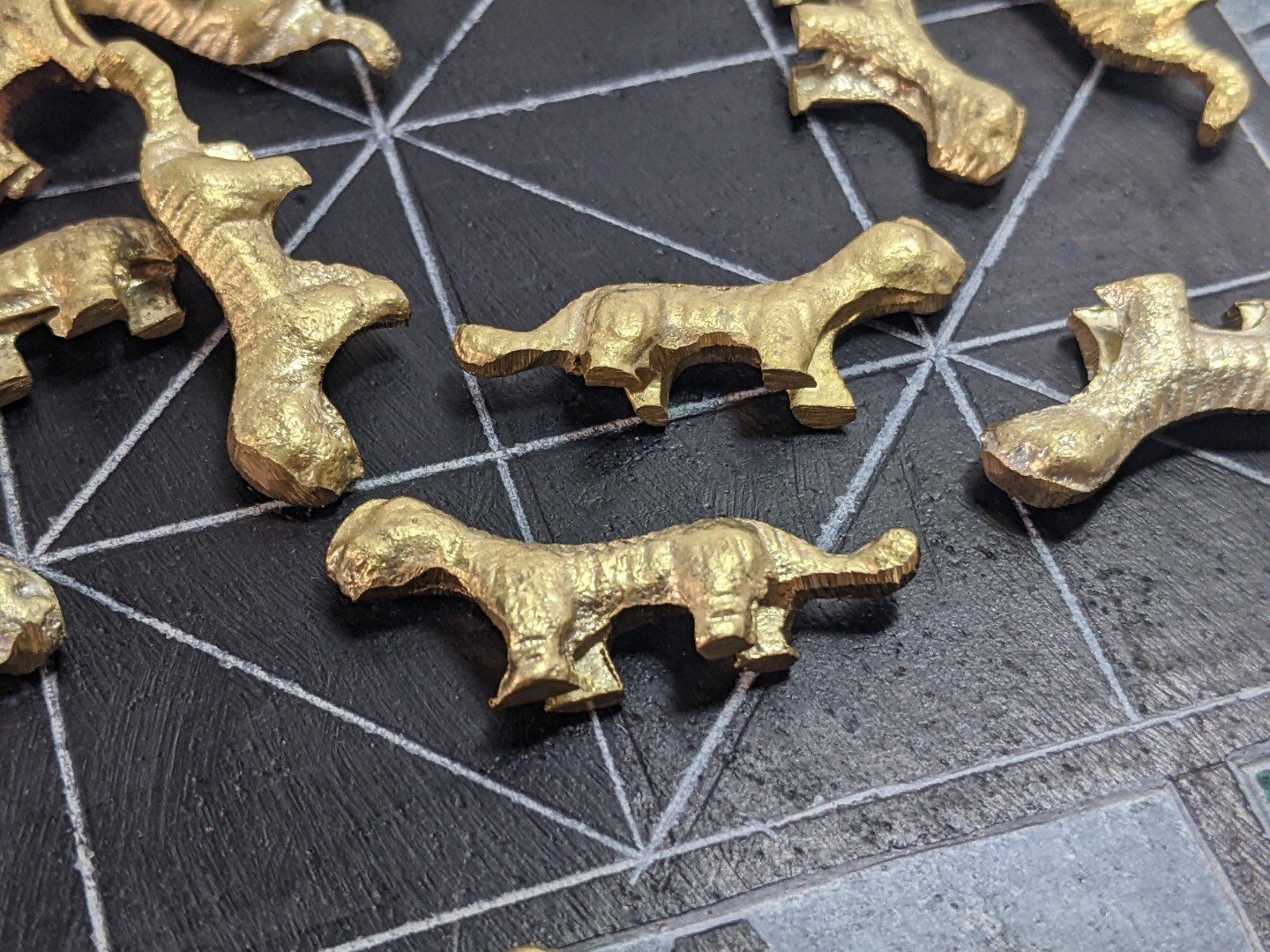 2x Spare Tiger Pieces Bagh Chal Game Solid Brass Replacement SPARES ONLY No Board