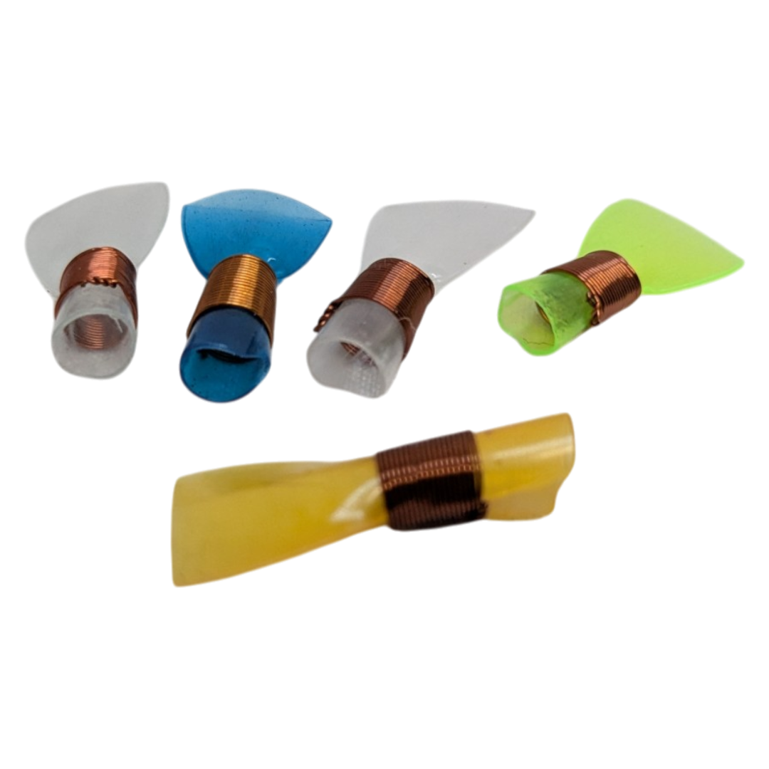Item Description Upgrade your sound with these professional-grade reeds specifically designed for the Vietnamese Ken Bau (traditional oboe). Unlike traditional organic reeds that can be temperamental with humidity, these high-quality plastic reeds offer consistent performance and incredible durability. Key Features: Traditional Construction: Each reed is expertly bound with high-tensile copper wire, ensuring a secure fit and traditional resonance. Consistent Response: Made from premium synthetic material for a reliable, bright, and powerful tone that doesn’t “wilt” during long performances. Vibrant Variety: Available in a range of translucent and neon colours (Blue, White, Lime Green, and Yellow) to suit your style. Precision Taper: Features a wide fan-shaped tip for maximum vibration and ease of blowing. Ideal For: Traditional Vietnamese Court Music (Nha nhac) Folk ensembles and ceremony performances Students and professional Ken Bau players looking for low-maintenance alternatives.