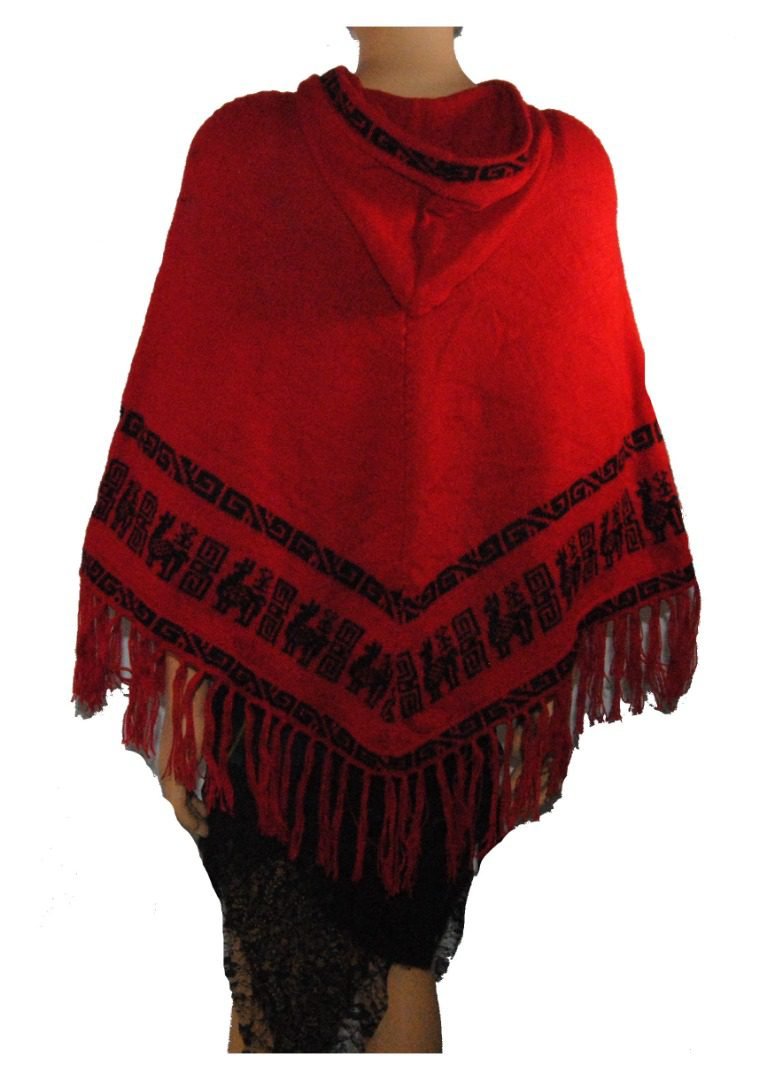 Ladies Hooded 100% Alpaca Wool Poncho – Red