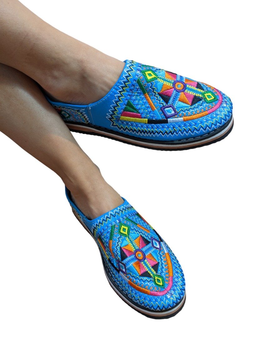 Amazigh Slippers – Experience the rich heritage of Morocco with these handcrafted Amazigh design embroidered babouche slippers.
