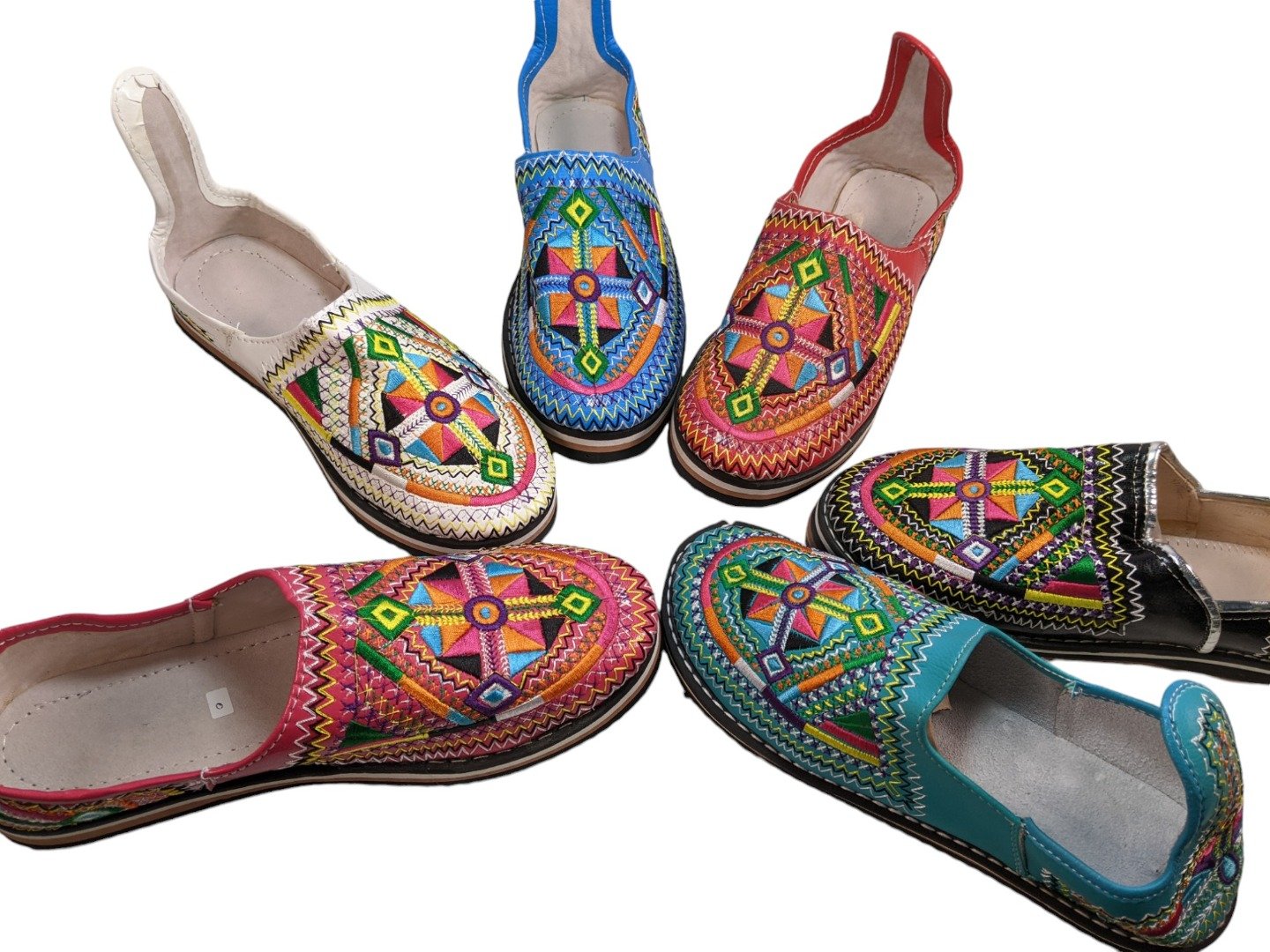 Handcrafted Quality:Â Each pair is a unique work of art, with slight variations in color and embroidery patterns reflecting the artisan’s touch. Fair Trade: Supporting traditional craftsmanship and ethical sourcing.