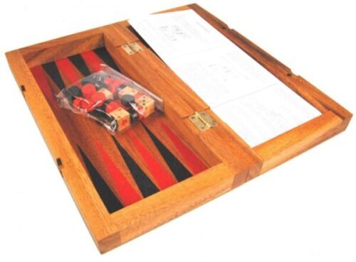 Backgammon Board.Size: 30x30cm. Wooden Set Made in Thailand.. Wooden pieces and wooden box. Comes with instructions.