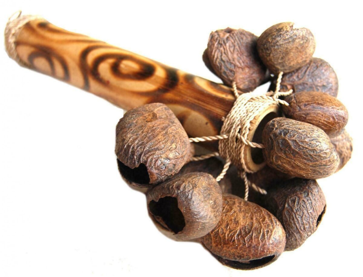 These made from rainforest seeds and bamboo traditionally shaken during festivals and rituals.