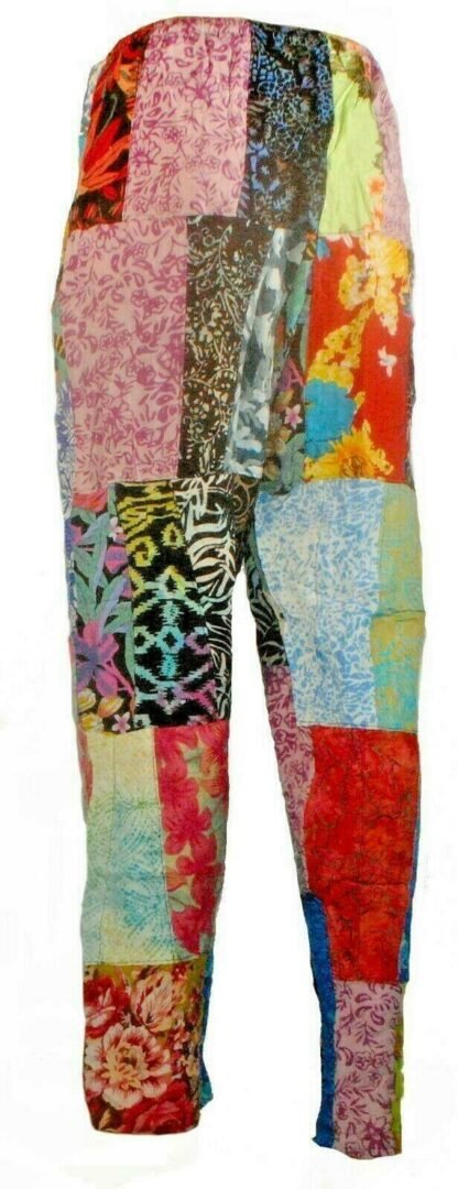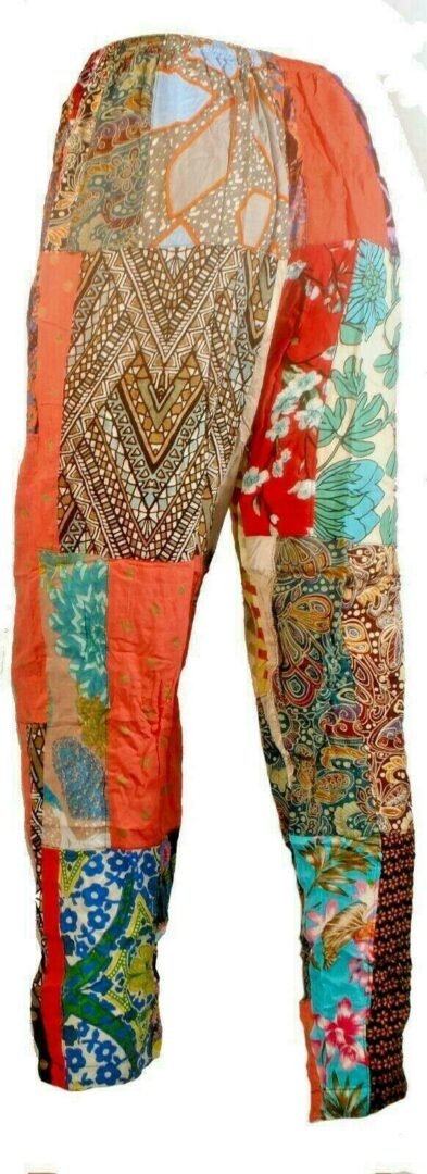 Batik Pants / Trousers Batik Pants – Made from lots and lots of individual patches sewn together. This is real patchwork and printed patchwork. Each patch is stitched to the next until the area it large enough to make the design. Please Ensure You Fit the size choices. Standard Sized. Made from Cotton Batik. Choose from 4 sizes. 100cm long (39 inches) elasticated drawstring waist with pockets Please ensure you fit the above sizes to avoid disappointment please note due to the handmade nature of the garment there will be variation in patches and therefore won’t be the exact same as the one pictured – this is hand made Balinese crafted clothing, not factory made and each is a unique individual item. Made by by a talented dressmaker (Ema) with whom we have built a successful and ongoing small business relationship. Her workshop is based in Bali, Indonesia. These are made from patches of new batik material. Batik is an art form in itself in Indonesia. Its a technique to dye fabrics using wax to create unique designs. This item is made from new batik material but we also sell items made from increasingly rare vintage batik patches. you can spot the difference between old and new batik by the vibrancy of the colours. Vintage batik cloth is in more muted colours. More information on Batik Original product picked by Terrapin Trading. We source all items in-person, in the country they are made. We pay fair trade prices to our makers.