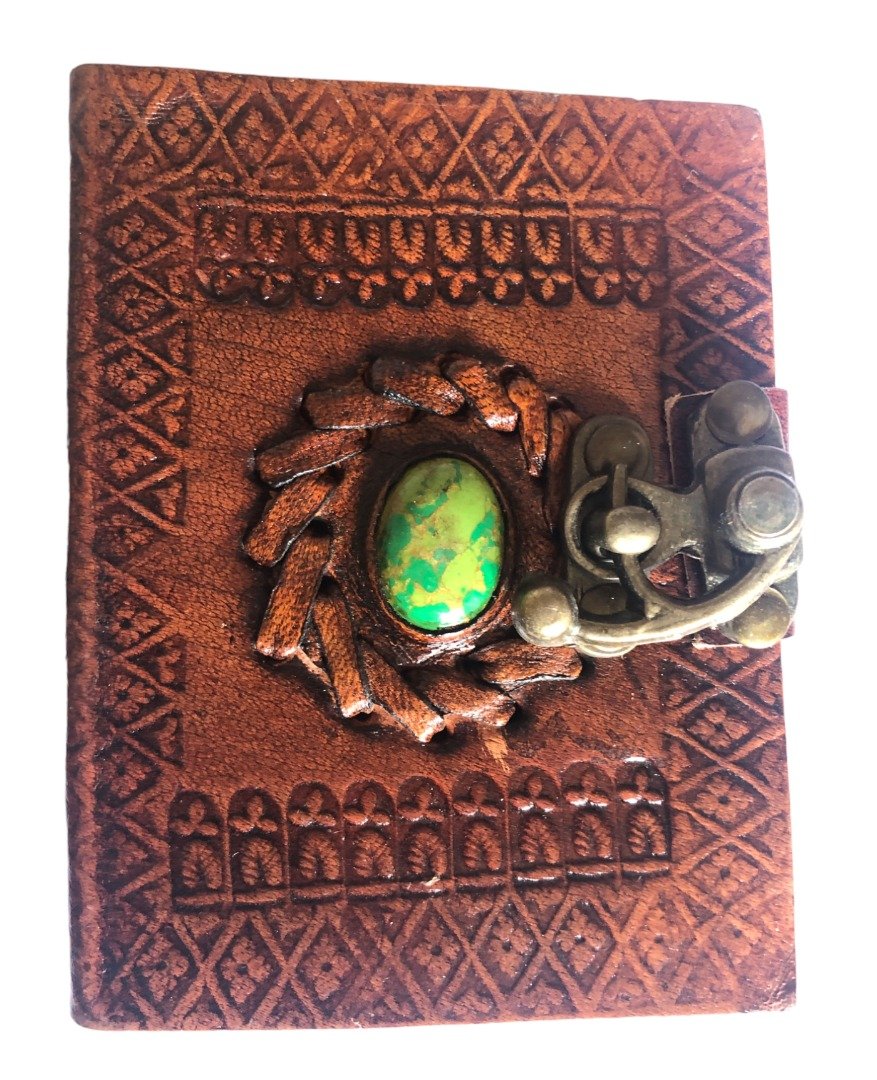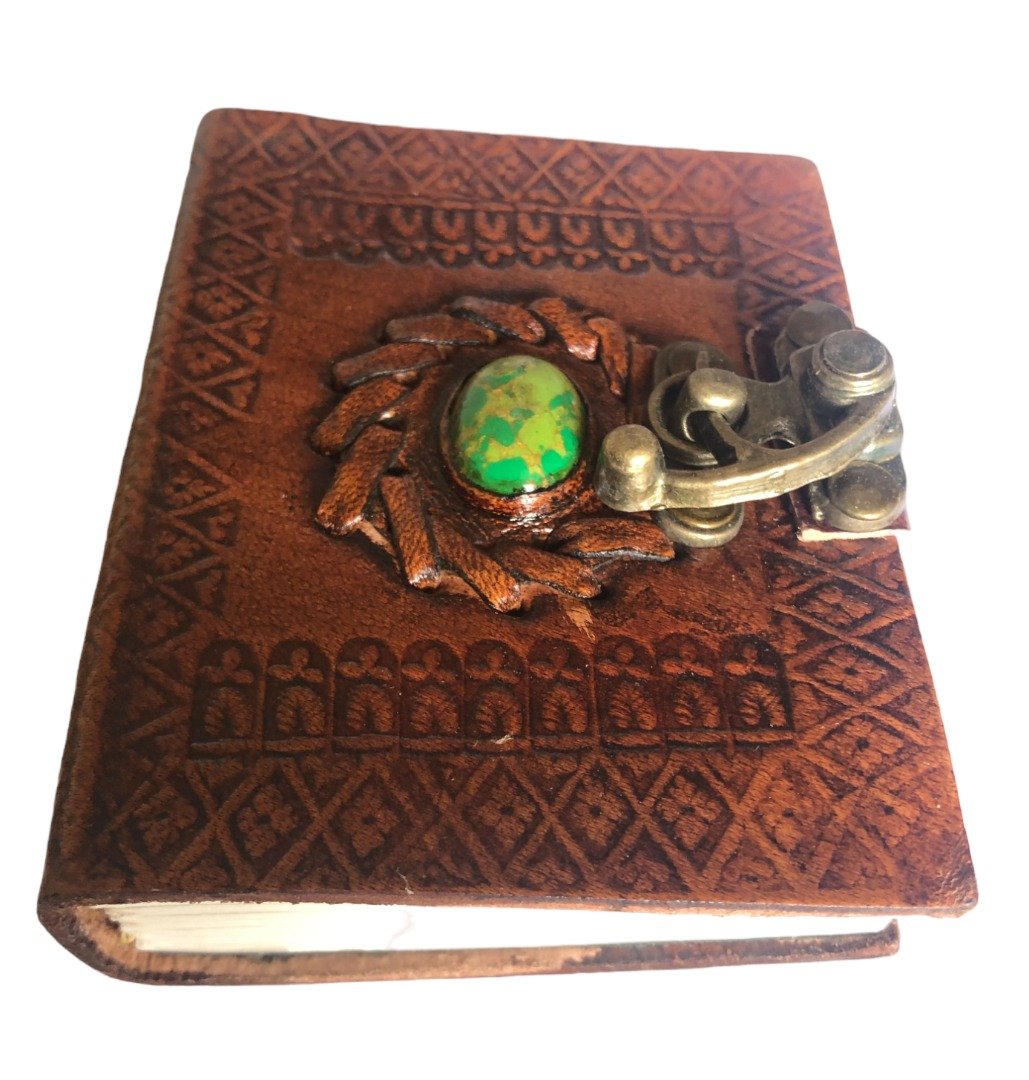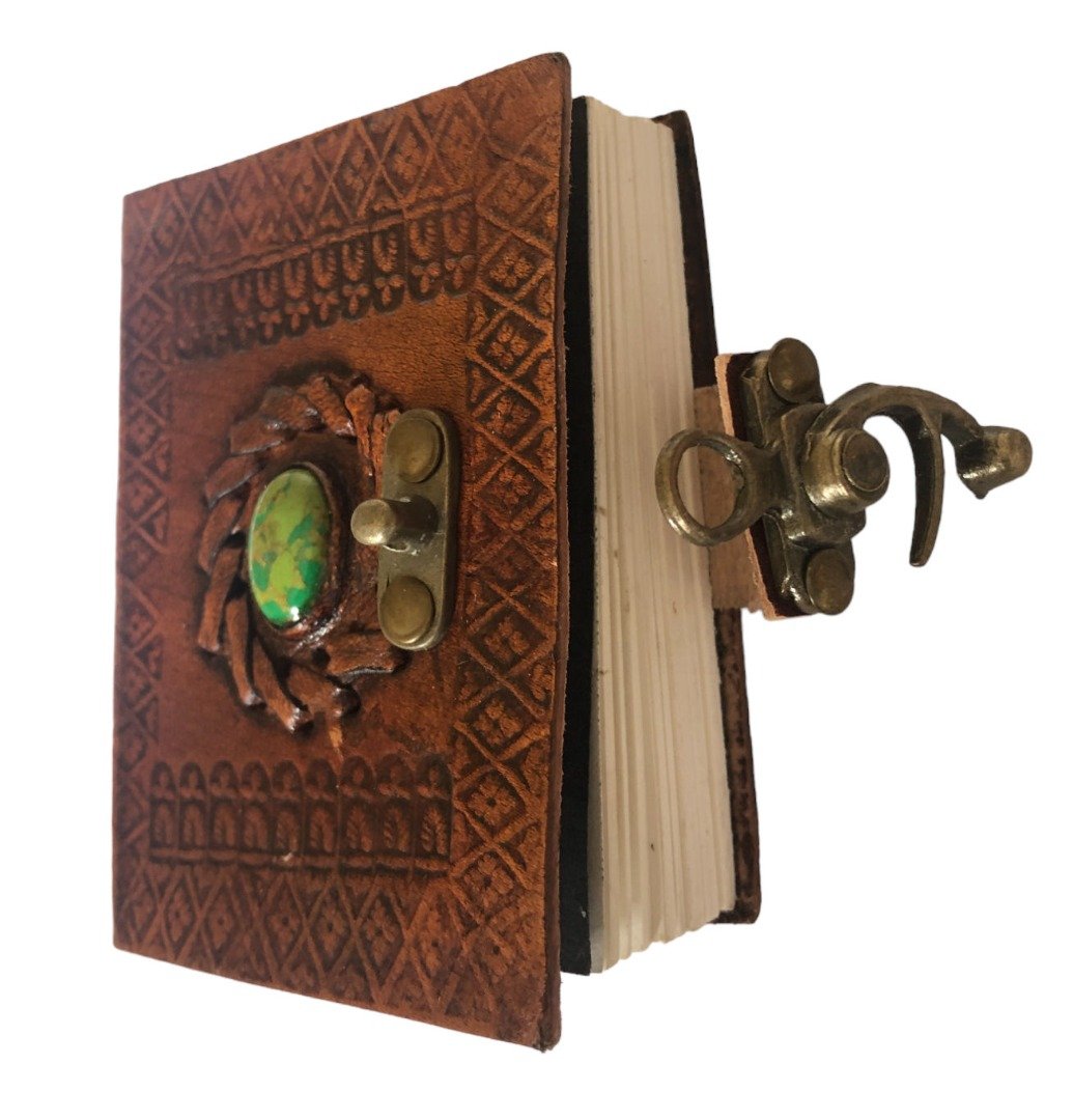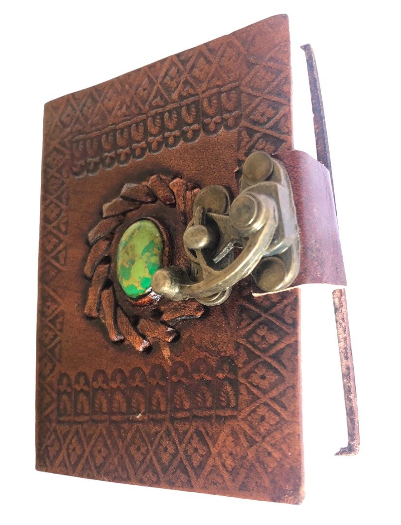 Beautiful Handmade Indian Camel Leather Art Sketch Book Notebook Journal size 10x8cm inlaid with Stone &Clasp