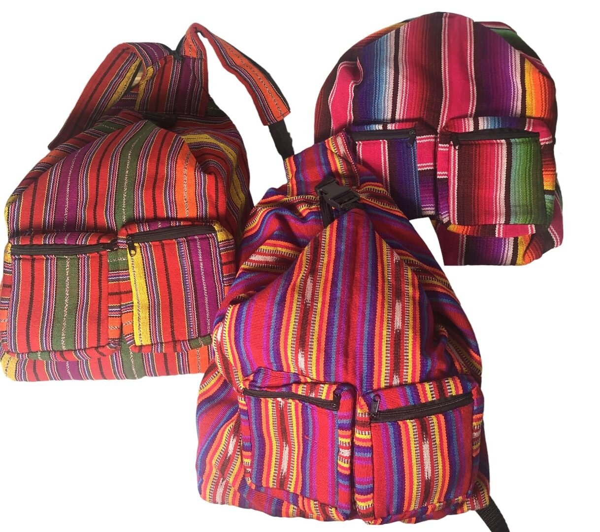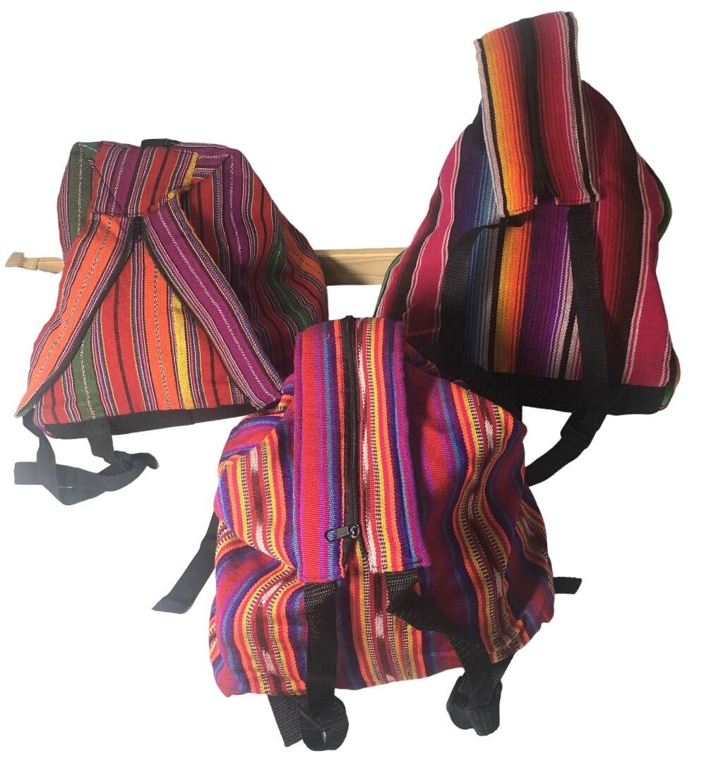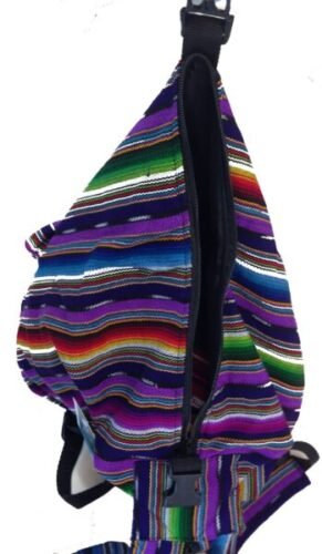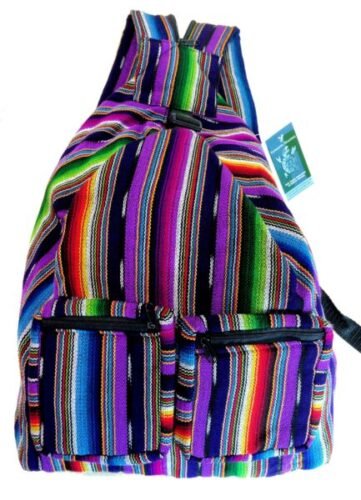 This is a fair trade item sourced from a small fair trade Mayan artisan. We sourced these bags from a rural mountain town where indigenous people sell their wares at the local markets. This bag is a Guatemalan import made using traditional tribal techniques, colours and tapestries Funky bright designs to chose from – they are unique, not mass produced. Each one has a different bright and funky design and they are made to a high standard. The colour variations, shades and stripes may vary from bag to bag due to the unique, handmade nature of these. Outer zip pocket with fold over clasp close. Partially zippable back strap. We work with craftspeople, women’s initiatives and small family businesses to build ongoing, progressive business relationships built on mutual respect and sustainability. This allows us to personally ensure that the principles and standard of fair trade are upheld by our craftspeople.