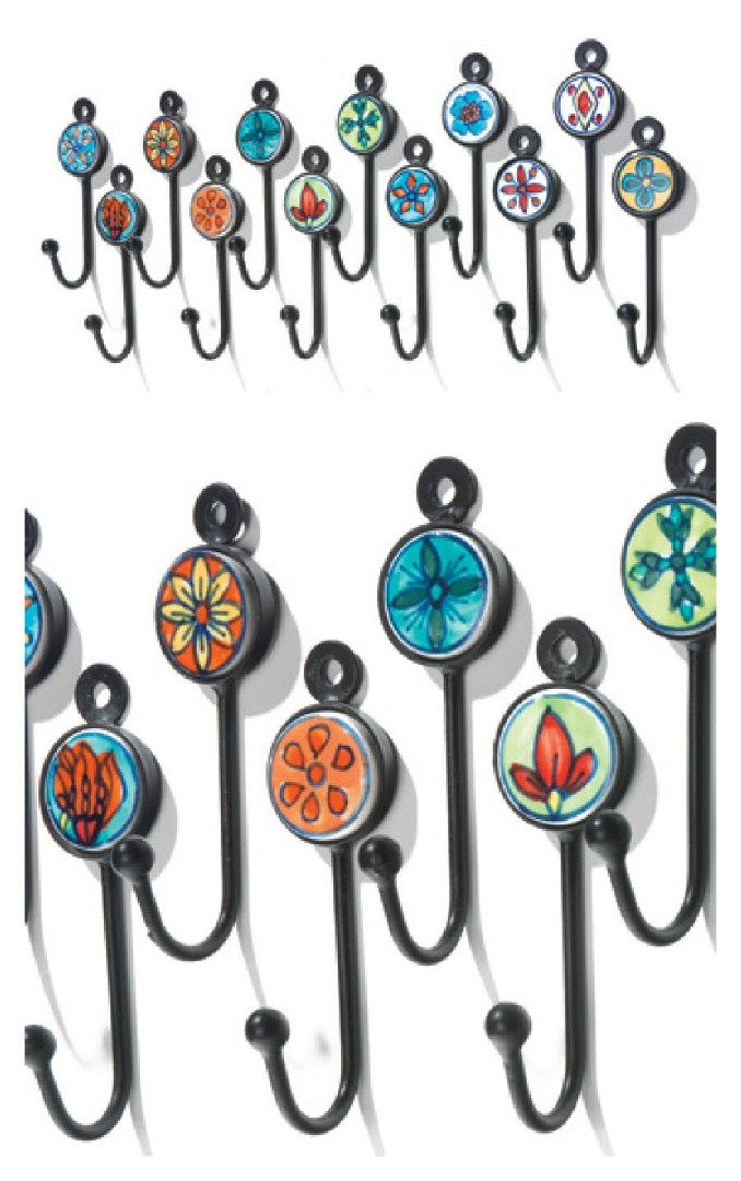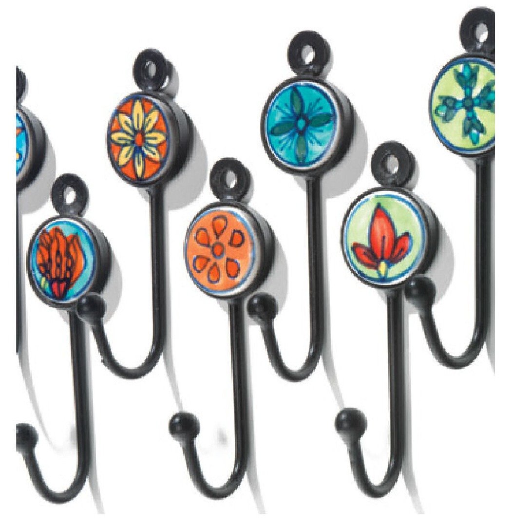 These mini ceramic hooks have been beautifully hand painted in bright colours and with a floral style.