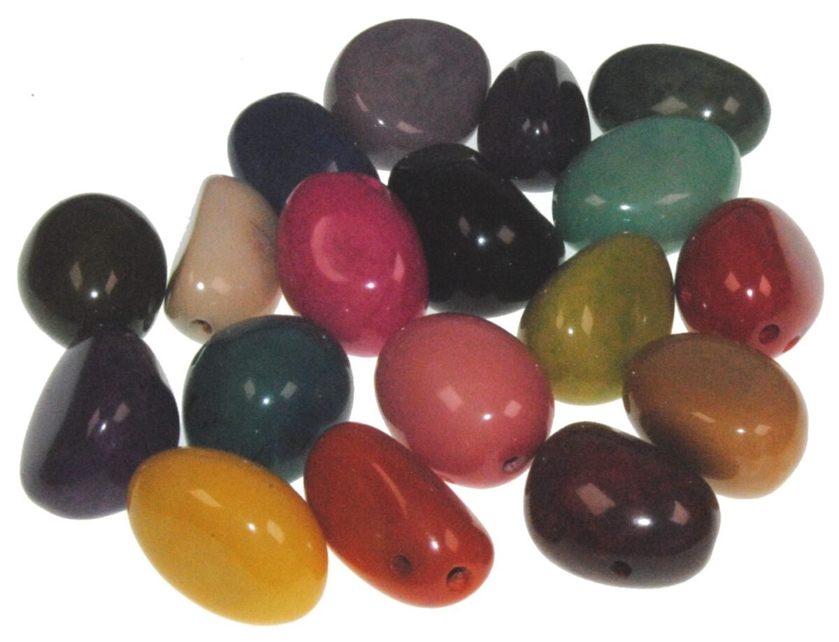 Tagua nuts are available in 31 colour choices. Be aware that displayed colours can vary from supplied colours while tagua is a natural material, dyeing is manual and the monitor displays colours different than the actual object.