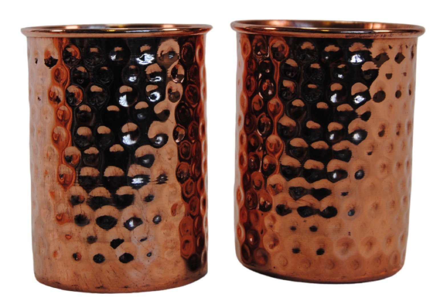 Copper Cups Pair | Set of 2 | Hammered Copper | Inhibits bacterial growth | Genuine import from India | Item Ships from UK | Fairly Traded Item