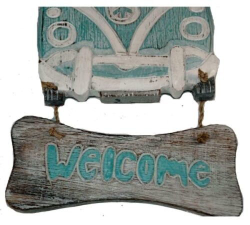 Made from all natural nautical – driftwood and rope. Funky campervan design , hand painted in beach colours.