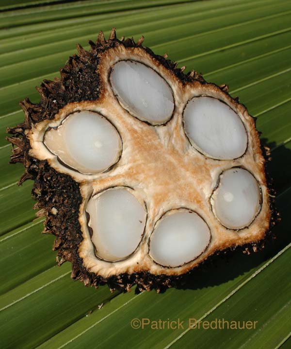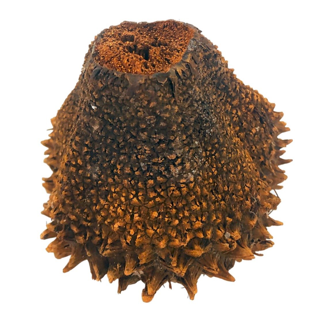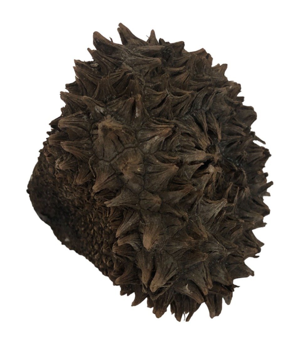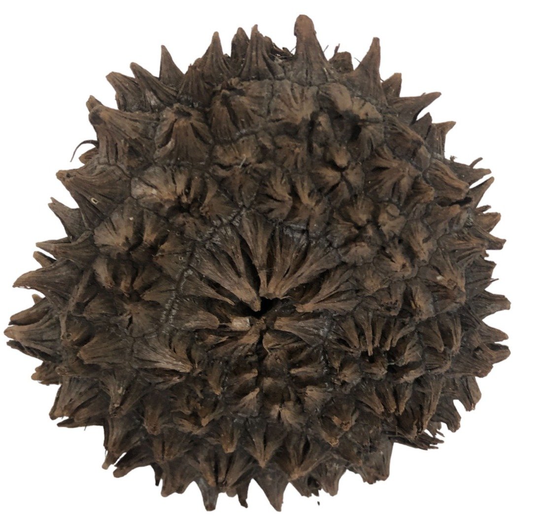 1 x Mocococha Tagua Nut Cone Due to the natural product, this may be different from that pictured, including cross section. Will vary in size and weight. Tagua is known as vegetable ivory, a sustainable alternative to animal ivory. The ivories characteristics differ primarily in that tagua softens when soaked in water for long periods of time, while animal ivory stays hard. During Victorian times, tagua was used to manufacture decorated thimbles, dice and jewellery. Before plastic buttons became popular, tagua was a key material in the button industry. In the late 1800s, factories in London and Birmingham imported two to three million nuts annually. During the 1920s, 20% of all buttons made in the United States were made out of tagua. Today, Patagonia, Smith & Hawken and various fashion houses, especially from Italy, continue to use tagua buttons for their clothing. Ecuador is the only exporter of the tagua disks used to produce buttons. Annually, Ecuador exports approximately 100,000 metric tons of tagua. Vegetable ivory is also used to craft jewelry, tiny sculptures and in the design of home decoration products. The locals regularly make the trek into the damp forests to search for tagua ready to be harvested. The female flowering heads of the Cade tree are known as mocochas or cabezas. Every year, the female cade produces ten to twelve mocochas, each measuring about one foot in diameter. The penco segments are concentrically united, creating the mococha, which holds 100-200 individual tagua nuts. The germination of the tagua seed takes approximately eight months. Early in the seed formation process, the penco carries five or more large round clear gelatinous blobs safely cradled in a radial pattern in their individual natural round holders. Eventually, the gelatinous blobs harden and turn into hard creamy white seeds surrounded by a thin brown skin covered by a yellow fruit. The fruit is eaten by deer and rodents from the agouti species, locally known as guatuso, and the guanta, referring specifically to the paca (Agouti paca), the second-largest rodent (the largest is the semi-aquatic South American capybara). When the seeds ripen, the mococha falls to the ground. A mature cade is capable of producing 80 to 130 pounds of tagua nuts. The tagua nuts are usually extracted from the penco at the site where they are found. They are then bagged in netting and transported by mule or bicycle to be dried and hardened for eight to twelve weeks. The tagua is versatile and can be processed in various ways, depending on the design of the end product. The dark skin of the tagua is left on and polished for the chocolate or coffee bean look. Another technique is polishing the tagua until a lovely veined design is exposed, revealing the underlying creamy white seed beneath the dark tagua skin. The pure white stage is reached when the dark brown skin is completely sanded down. Most artisans use the creamy white seeds to craft the tiny tagua sculptures. As the tagua ages it turns into a warm antique cream color. Depending on the desired look, the white tagua may be fried, resulting in a caramel-like appearance. For this effect, the nuts are literally fried in oil in a frying pan. This technique is used primarily to make jewellery. Each tagua nut style comes in small, medium and large sizes. The tagua size chosen by the craftspeople depends on the figurine being carved or the product being made. Larger animals may be carved out of more than one nut and assembled accordingly. Varying qualities of products exist. The craftspeople have a fine reputation for crafting varied and exquisite figurines, from leatherback turtles to white-tipped sicklebill hummingbirds and other high quality sustainable products using local materials. The process of harvesting, designing and creating products out of tagua provides people with jobs and cuts down on the use of animal ivory.