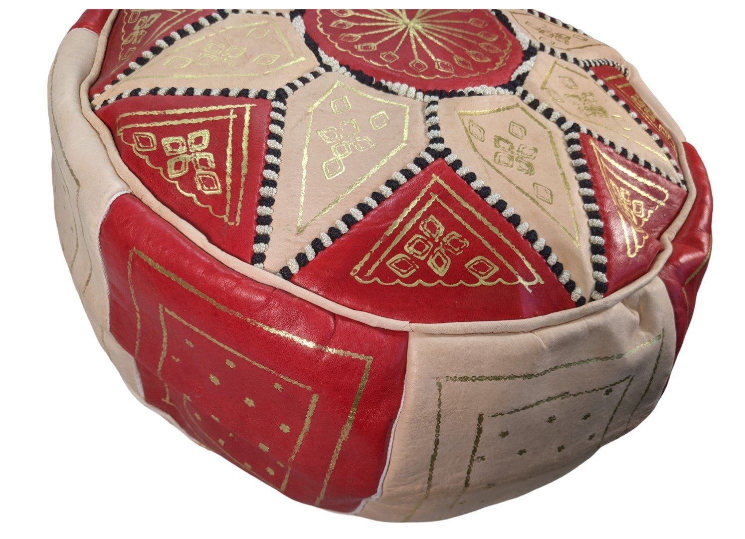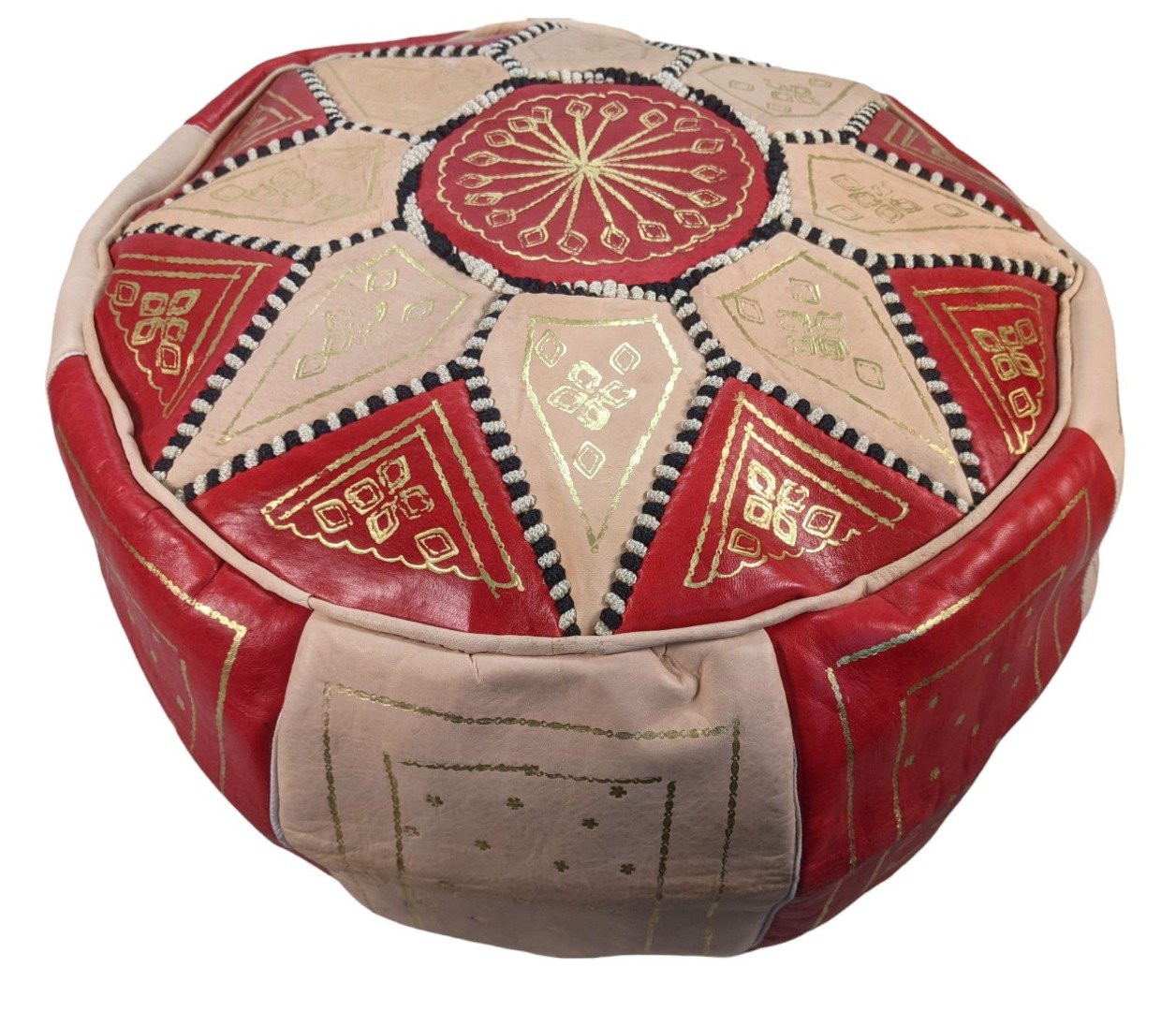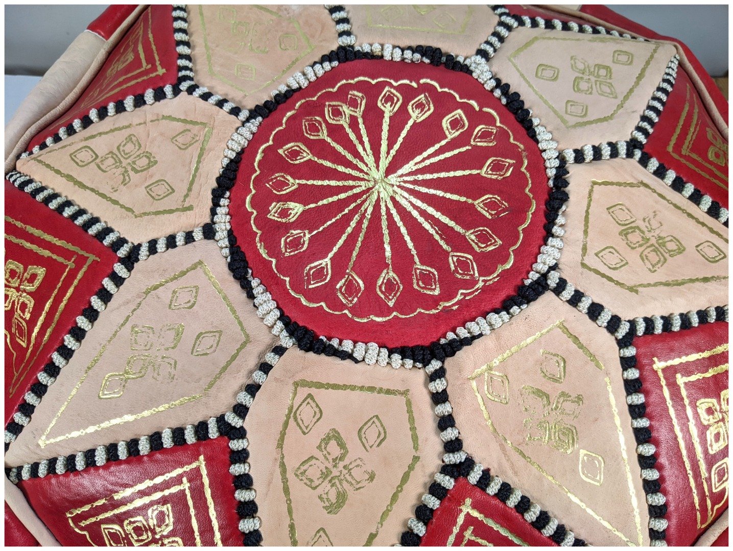 Fair Trade Handmade Moroccan Leather Pouffe – Star Red