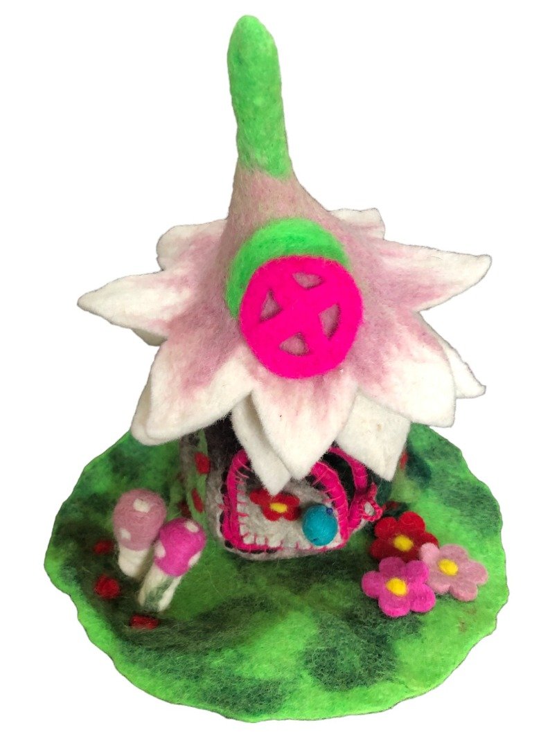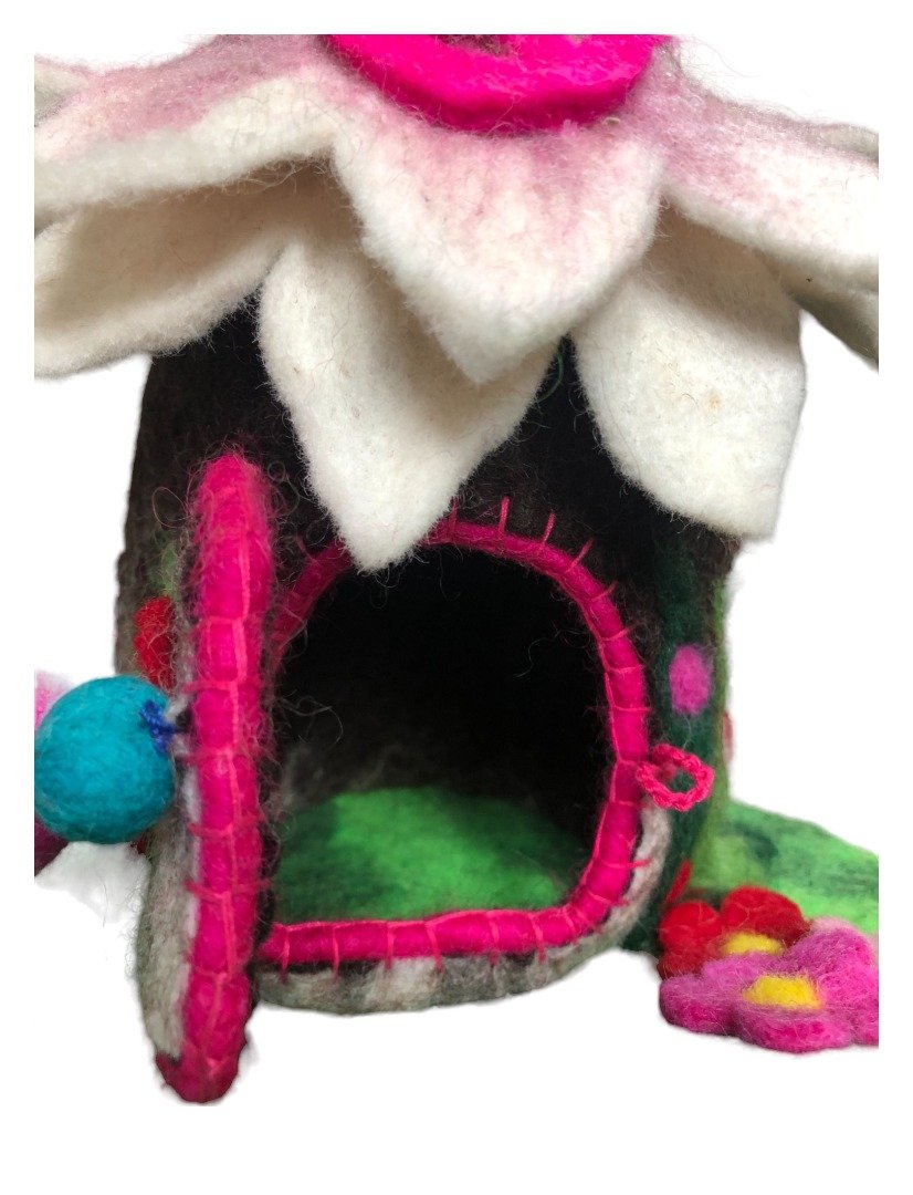 Fairy House: Beautiful hand crafted felt magical fairy house complete with windows and garden and moveable door. Stunning and unusual, a perfect home for a