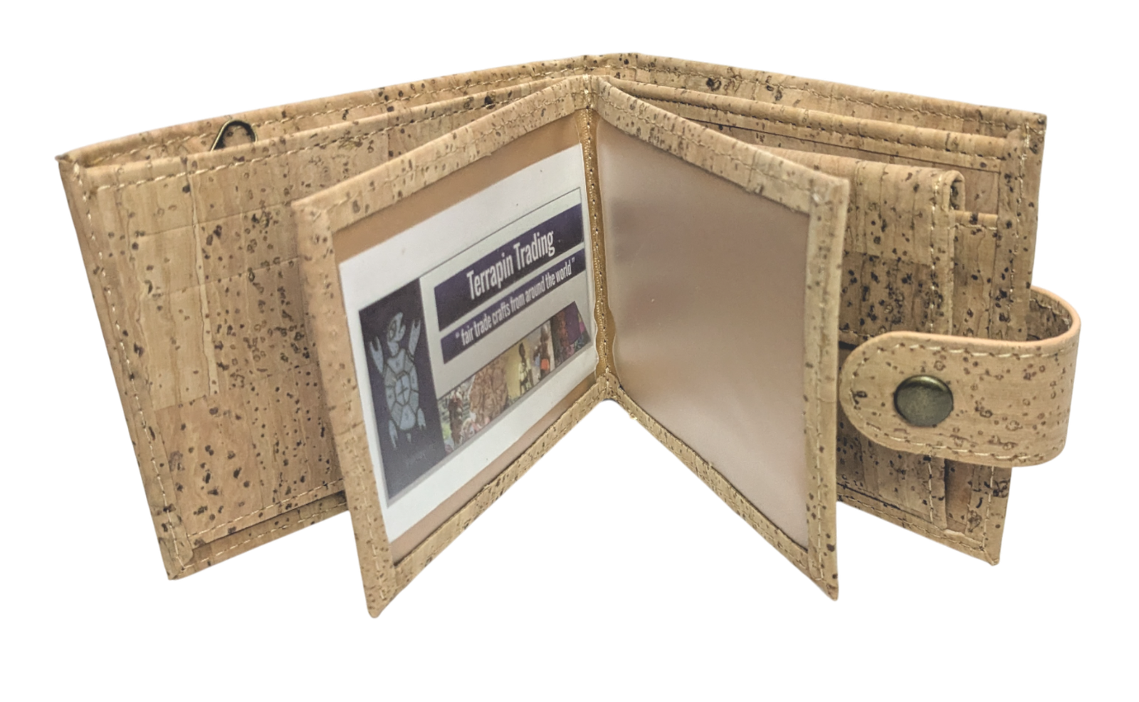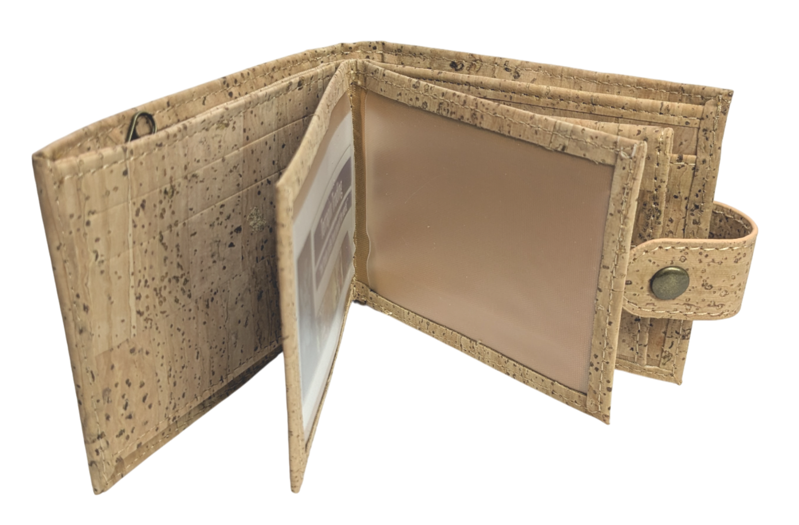 levate Your Essentials with Authentic Portuguese Craftsmanship Discover the perfect blend of Mediterranean style and modern sustainability. This exquisite trifold wallet is made from genuine Portuguese cork, a material celebrated for its durability, lightweight feel, and unique natural grain. Personally sourced from the vibrant streets of Lisbon, each wallet carries the essence of traditional Portuguese artisanry. Why Choose Cork? Beyond its stunning aesthetic, cork is one of nature’s most remarkable materials. It is harvested from the bark of cork oak trees without ever harming the tree itself, making it a champion of sustainable fashion. Naturally water-resistant and incredibly soft to the touch, it offers a premium alternative to animal leather that is both ethical and long-lasting. Thoughtful & Secure Organization Designed for those who need more space without the bulk, this trifold layout offers superior organization. It features six precision-cut card slots and two convenient transparent windows for your ID or drivers license. In addition to a standard banknote section, an integrated zip compartment provides extra security for high-value items, while the stud-close coin purse keeps loose change contained. A Gift That Matters Whether you are treating yourself or looking for a meaningful gift for a loved one, this wallet is a statement of values. Ideal for vegans, vegetarians, and anyone committed to reducing their environmental footprint, it arrives ready to be a daily companion for years to come. Product Specifications for Listing Material: 100% Genuine Portuguese Cork Dimensions (Closed): 11cm x 8.5cm x 2cm Closure Type: Snap/Stud Origin: Sourced in Lisbon, Portugal Features: 6 Card Slots, 2 ID Windows, 1 Banknote Section, 1 Zip Note Section, 1 Coin Purse GENUINE PORTUGUESE CORK: Expertly crafted from authentic, high-quality cork personally sourced in Lisbon, Portugal. This natural material offers a unique, sophisticated texture that stands out from traditional leather. SUSTAINABLE & VEGAN FRIENDLY: A perfect choice for vegan and vegetarian lifestyles. Our cork is a 100% natural, renewable, and biodegradable resource, making this a truly eco-conscious and cruelty-free accessory. ENHANCED TRIFOLD CAPACITY: Measuring 11 x 8.5 x 2cm when closed, this expanded design features 6 card pockets, 2 transparent ID windows, a spacious note fold, and a secure zip section for extra security. DURABLE & WATER RESISTANT: Naturally rugged and highly water-resistant, Portuguese cork is designed to withstand daily wear and tear while protecting your valuables from the elements. Easy to clean and exceptionally lightweight. SECURE STUD CLOSURE: Designed with a reliable stud-close strap to keep your wallet compactly shut and your coins, cards, and cash safe inside your pocket or bag.