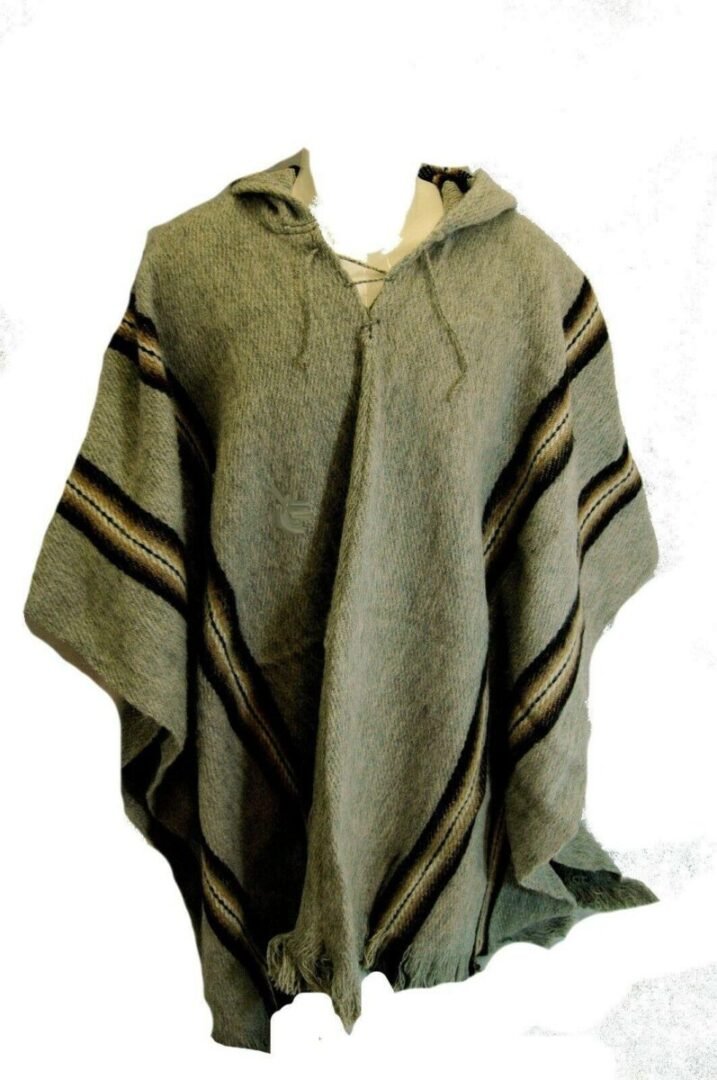 Traditional, Indigenous Design Cosy and Warm Hooded Poncho Genuine Bolivian Alpaca Product as Worn by Indigenous People in Bolivia & Peru