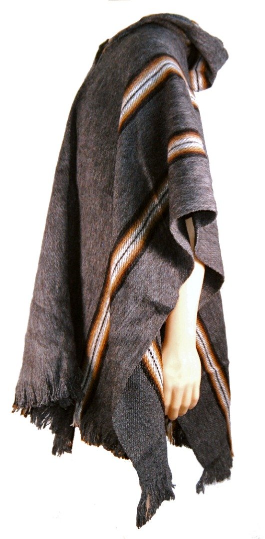 Traditional, Indigenous Design Cosy and Warm Hooded Poncho Genuine Bolivian Alpaca Product as Worn by Indigenous People in Bolivia & Peru
