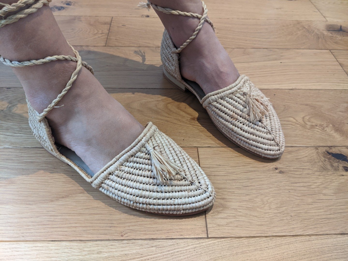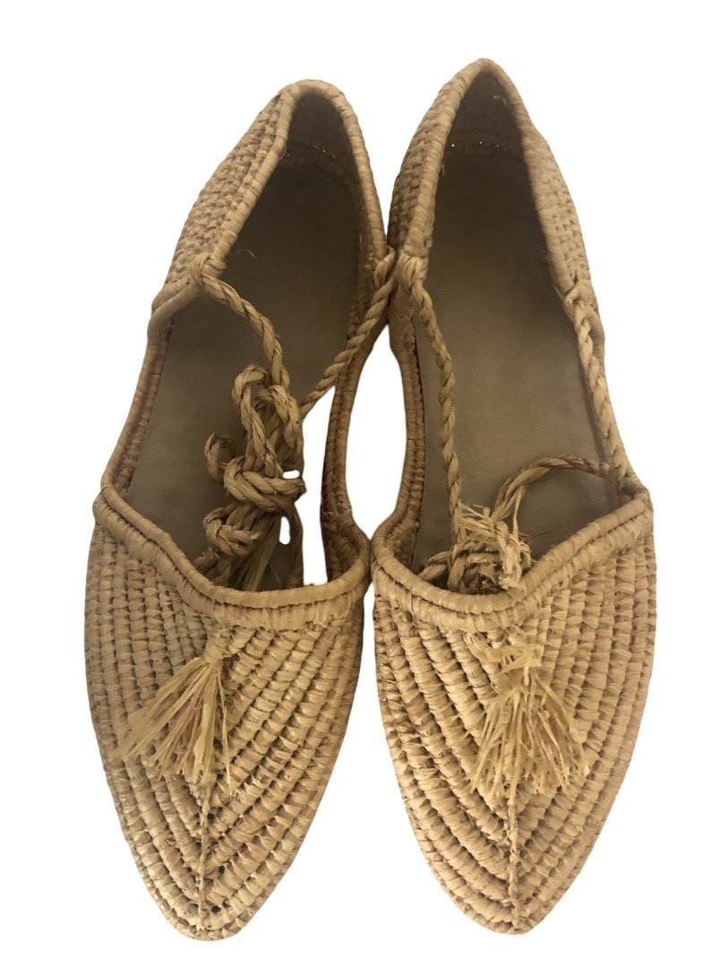 Handmade Moroccan Raffia Shoes Ballerina Style Tassel UK3 US5 EU36