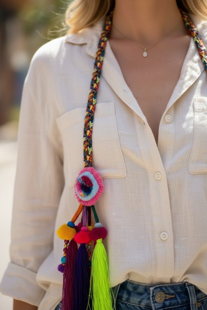 Hmong Tribal Long Tassel Scarf Handmade Boho Festival Textile Ornament Folk Art