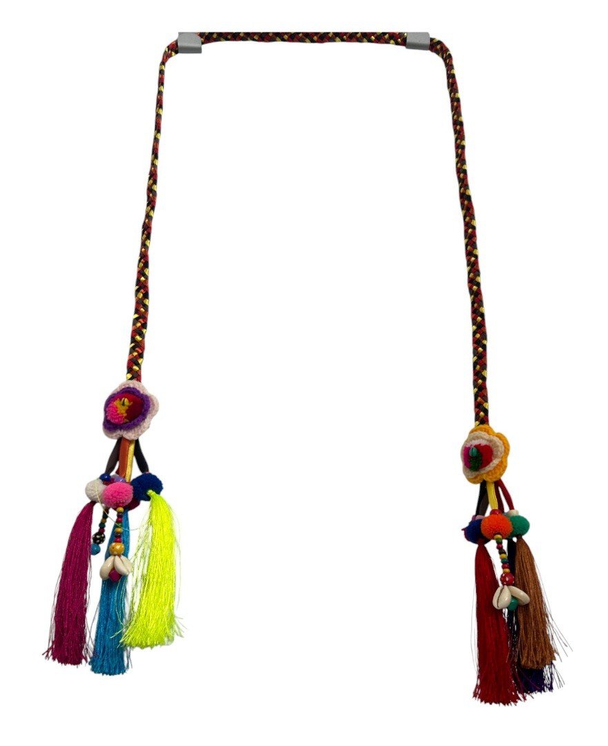 A beautiful Handmade Hmong Necklace, sourced from the tribal people who live in Northern Thailand / Laos /China. These colourful neck pieces are all unique, and can be decorated with sequins, beads, seeds, pompoms and other bright and colourful trinkets. Each one is unique, please note that you may not receive the exact one pictured – there are a few pictures to show the typical differences you might receive. This is for only ONE necklace, the different pics are to show a typical variation you might expect. These are beautiful to stand out and be different, to wear for festivals / parties or just to add a splash of colour, boho and hippy -ness to your outfit. We paid a fair trade price to the maker, to reflect the time to make these intricate pieces by hand. full length approx 150cm -160cm weight 55g approx A beautiful Handmade Hmong Necklace, sourced from the tribal people who live in Northern Thailand / Laos /China. These colourful neck pieces are all unique, and can be decorated with sequins, beads, seeds, pompoms and other bright and colourful trinkets. Each one is unique, please note that you may not receive the exact one pictured – there are a few pictures to show the typical differences you might receive. These are beautiful to stand out and be different, to wear for festivals / parties or just to add a splash of colour, boho and hippy -ness to your outfit. full length approx 150cm -160cm weight 55g approx We paid a fair trade price to the maker, to reflect the time to make these intricate pieces by hand. This is for only ONE necklace, the different pics are to show a typical variation you might expect. We sell a colourful range of hats and accessories, please explore our shop to find prized hats of fruit, flower, fauna, pixie, wizard, rainbow, animal and many more.