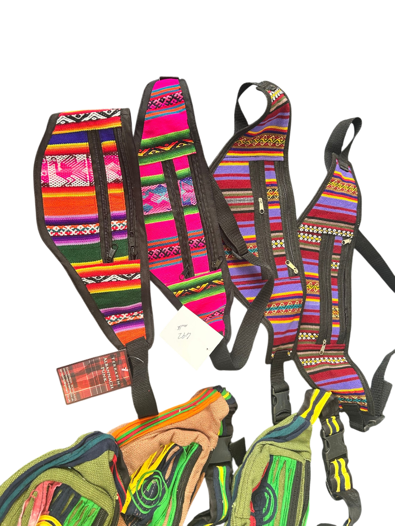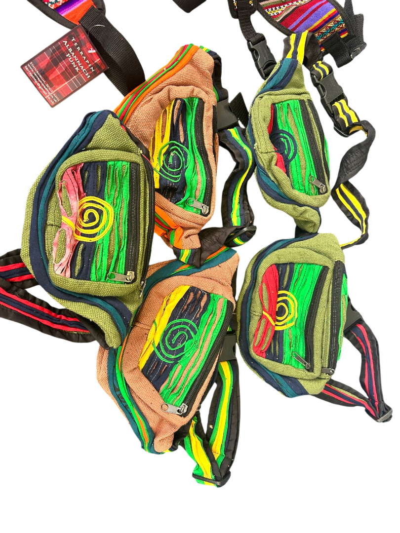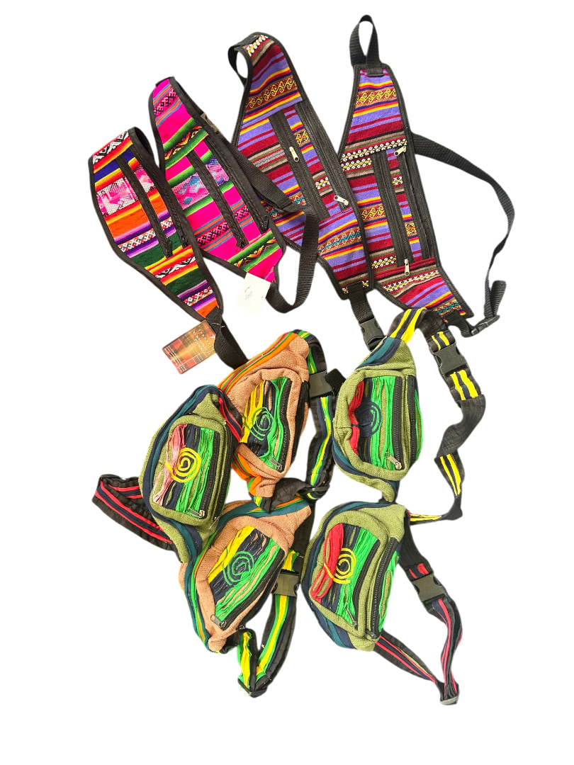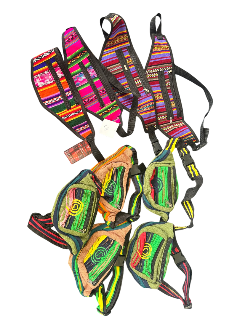 Description: Bundle of 9 colourful hippy-style bumbags, ideal for festivals, travel, resale, or gifts. Quantity: 9 bags Total weight: 1100 g Bright, eye-catching designs Great value job lot perfect for market stalls, online resale, or festival season essentials.
