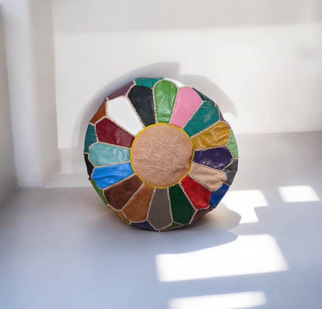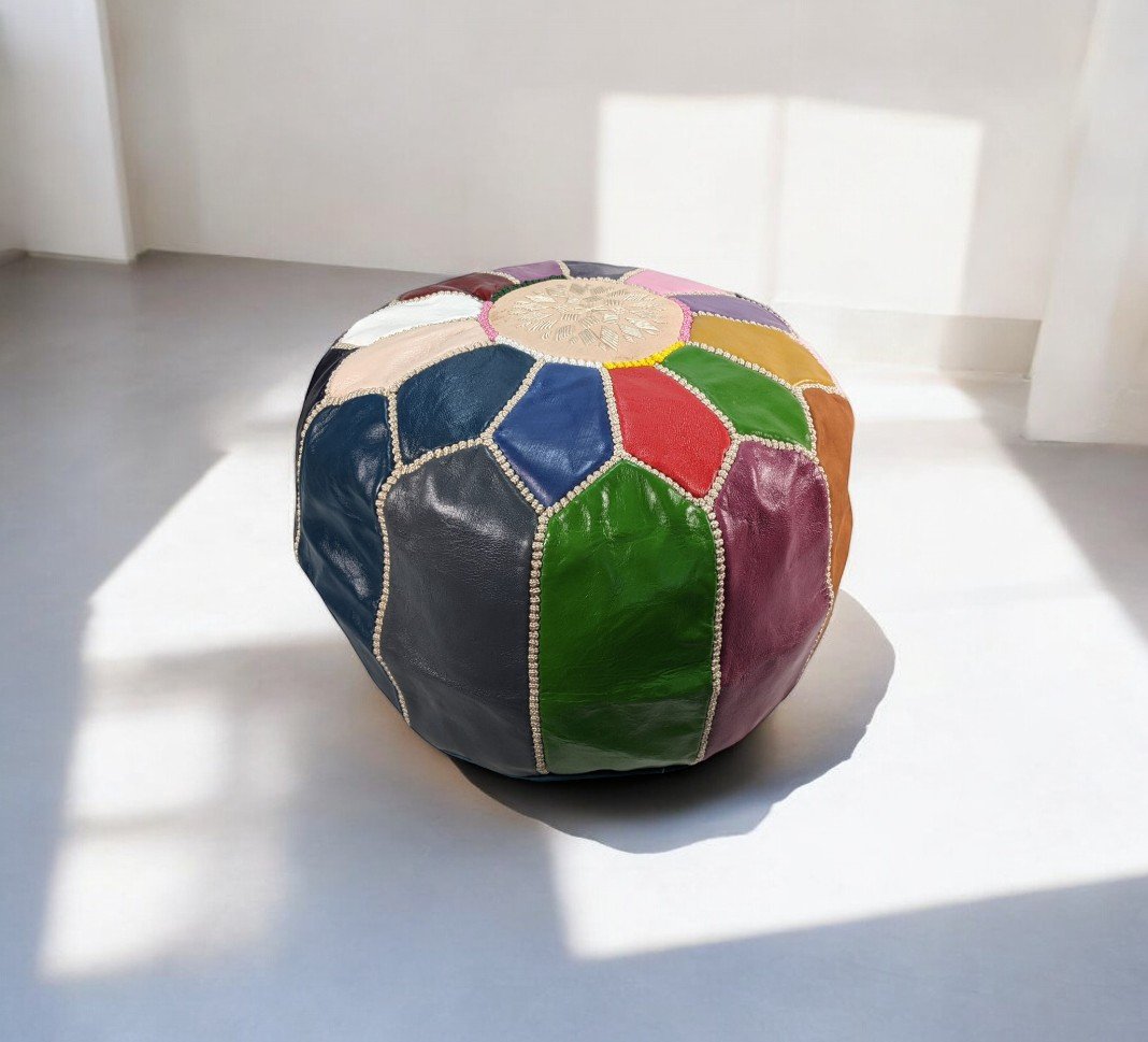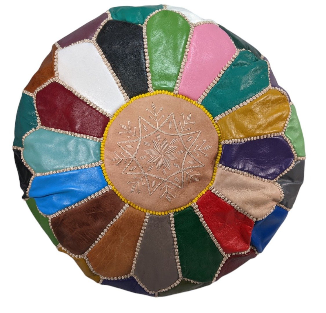 Large Leather Pouffe | Fairtrade Handmade Moroccan