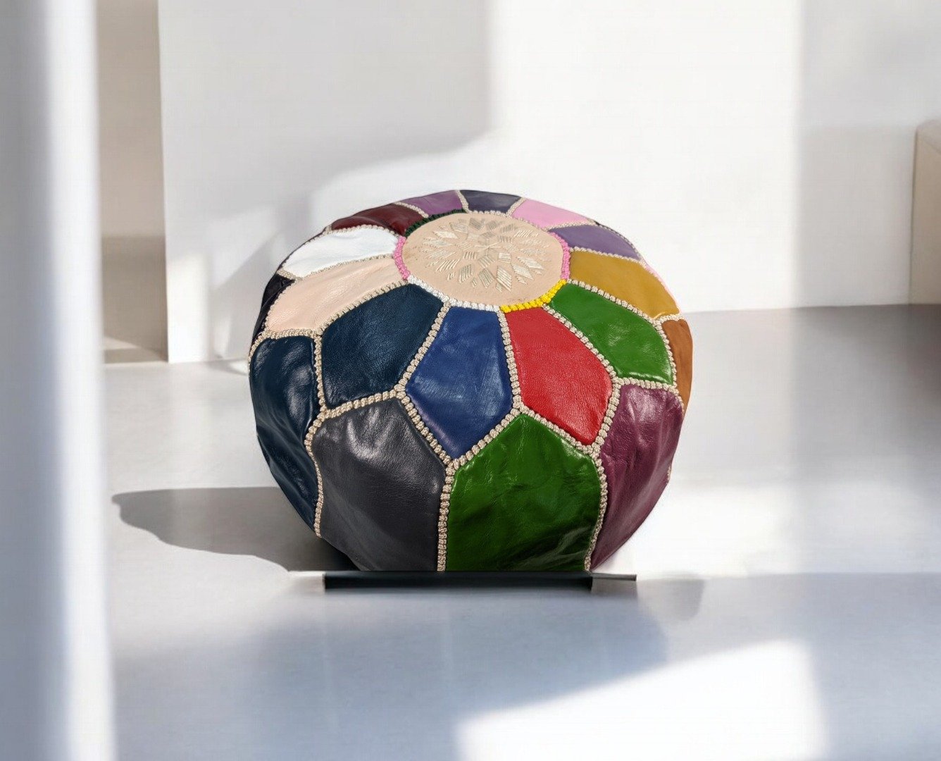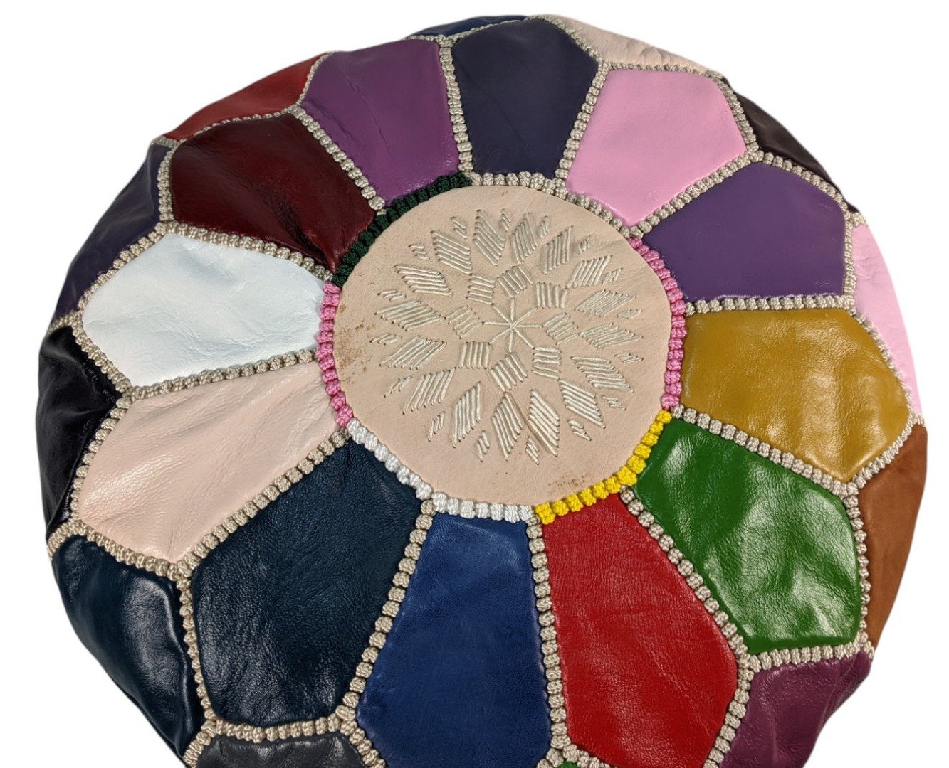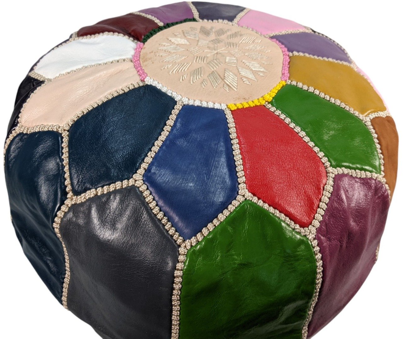 Large Leather Pouffe | Fairtrade Handmade Moroccan