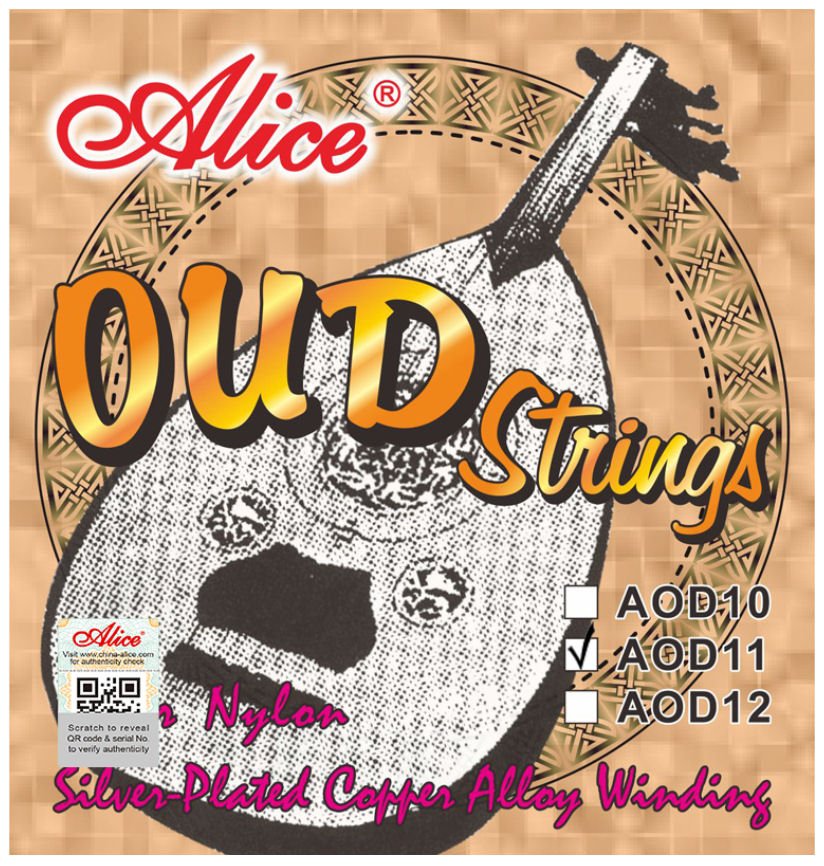 11-String Oud String Set, Clear Nylon Plain String, Silver-Plated Copper Alloy Winding This set features a warm and mellow timbre. Suitable for 11-strings ouds Clear nylon plain strings, silver plated copper alloy winding String gauges: 0.022(x2)0.028(x2)0.25w(x2)0.029w(x2)0.033w(x2) , 0.041w