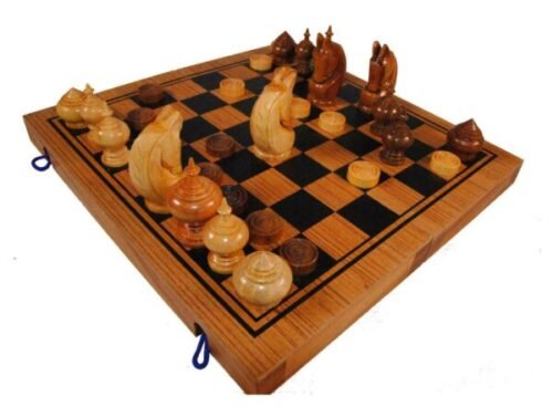 Makruk Chess – Ethical Thai Folding Rainwood Makruk Chess Board Set 30x30cm.This is an ancient chess variant descended from the Indian game of chaturanga.