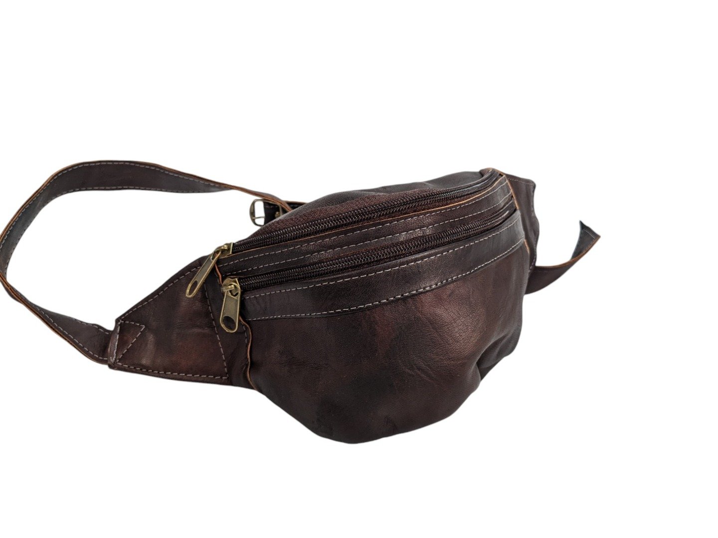 Authentic Moroccan Leather Fanny Pack – Handmade & Stylish About this Item Artisanal Excellence:This stylish fanny pack is meticulously handcrafted by skilled artisans in Morocco, ensuring exceptional quality and attention to detail. 100% Organic Leather:Made from high-quality, traditionally tanned Moroccan leather, this bag is both durable and eco-friendly. Spacious Storage:The main compartment measures 22 x 10 x 15 cm (8.66 x 3.94 x 5.91 inches), providing ample space for your essentials. Secure Storage:Two zippered pockets with metal hardware keep your belongings safe and organized. Adjustable Fit:The adjustable belt accommodates waist sizes from approximately 95 cm (37.4 inches) to 115 cm (45.28 inches). Why Choose Our Products? Authenticity:We personally source products from Morocco, ensuring their authenticity and quality. Ethical Sourcing:We support local artisans and fair trade practices. Unique Finds:Discover a wide range of authentic Moroccan products in our store. Search Terms:Moroccan leather bag, leather fanny pack, leather bumbag, waist bag, travel bag, handmade bag, Moroccan leather, authentic leather, organic leather, metal hardware This stylish fanny pack is meticulously handcrafted by skilled artisans in Morocco, ensuring exceptional quality and attention to detail. 100% Organic Leather: Made from high-quality, traditionally tanned Moroccan leather, this bag is both durable and eco-friendly. The main compartment measures 22 x 10 x 15 cm (8.66 x 3.94 x 5.91 inches), providing ample space for your essentials. Two zippered pockets with metal hardware keep your belongings safe and organised. Adjustable Fit: The adjustable belt accommodates waist sizes from approximately 95 cm (37.4 inches) to 115 cm (45.28 inches).