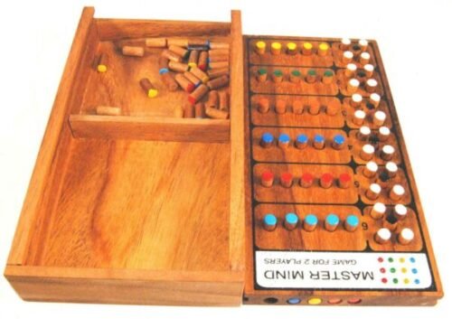Mastermind Game – Wooden Mastermind Game / code breaker Set. This is a beautifully carved set and would make a unique gift or for the family collections.