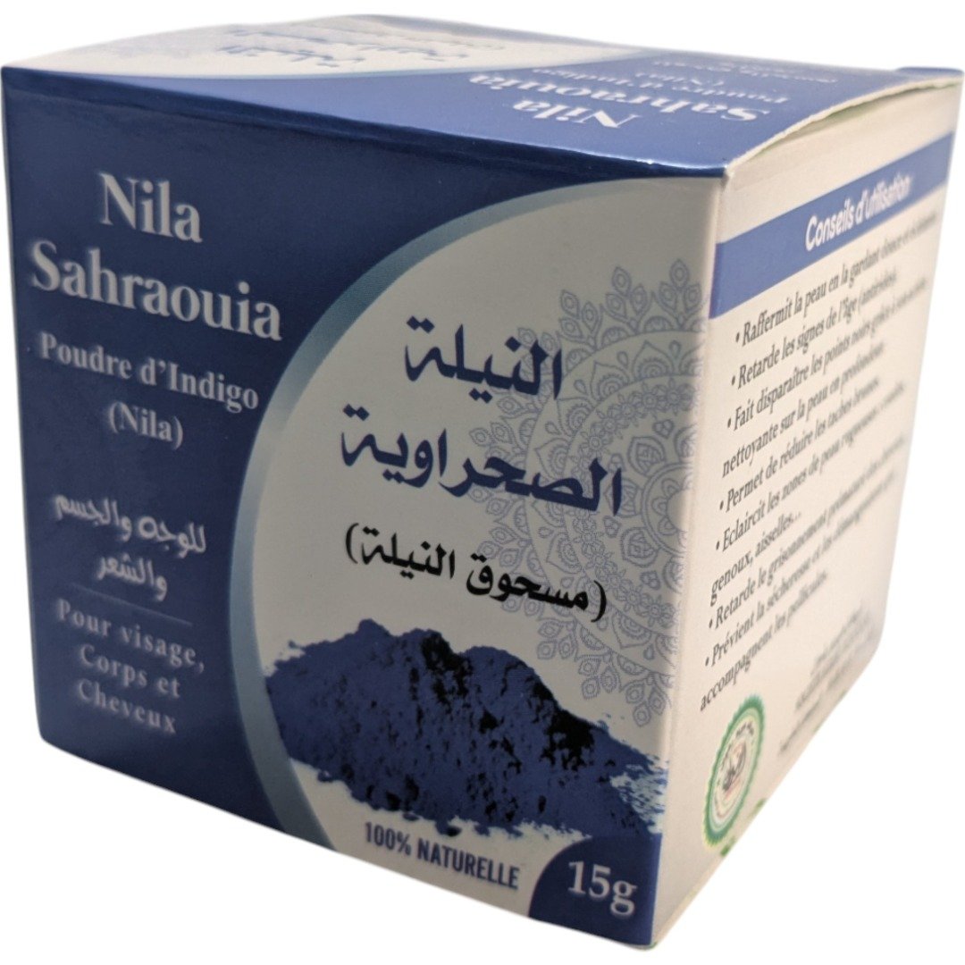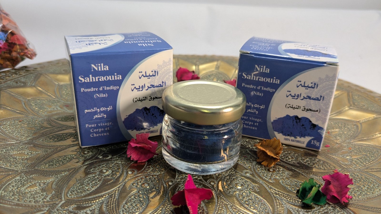Poudre de Nila Sahraouia Box Achifayne Weight including jar and box 82g. Item is boxed in a glass jar. The price is for TWO boxes. Product weight 15g Real Moroccan top quality Nila / Indigo Powder Indigo powder is a natural dye made from the leaves of the indigo plant (Indigofera tinctoria). Here are some of its key uses: Hair Dye: Indigo powder is commonly used as a natural hair dye, often in combination with henna. It can produce a range of colors from deep blue to black, depending on the application method and the ratio of indigo to henna. Fabric Dyeing: Indigo is a traditional and widely used natural dye for fabrics, particularly cotton and linen. It produces a classic blue color that is known for its durability and colorfastness. Body Art: In some cultures, indigo is used for temporary body art and tattoos. Key Characteristics: Natural Origin: Derived from a Moroccan plant source, making it a natural and often eco-friendly alternative to synthetic dyes. Versatile Color: Can produce a range of blue and indigo shades. Durability: Known for its colorfastness and longevity. If you’re interested in using indigo powder, it’s essential to follow proper safety precautions and use appropriate techniques to achieve the desired results.
