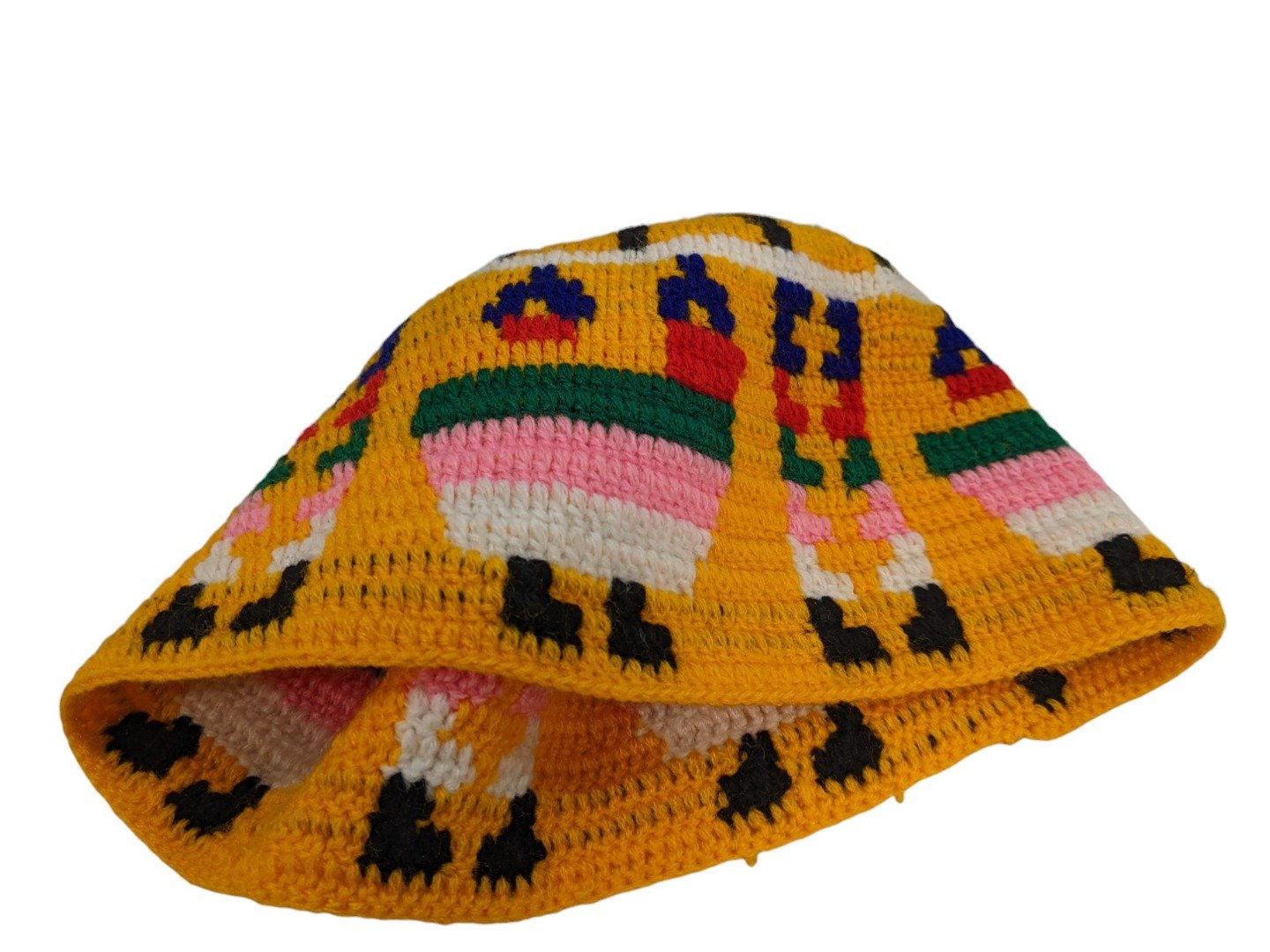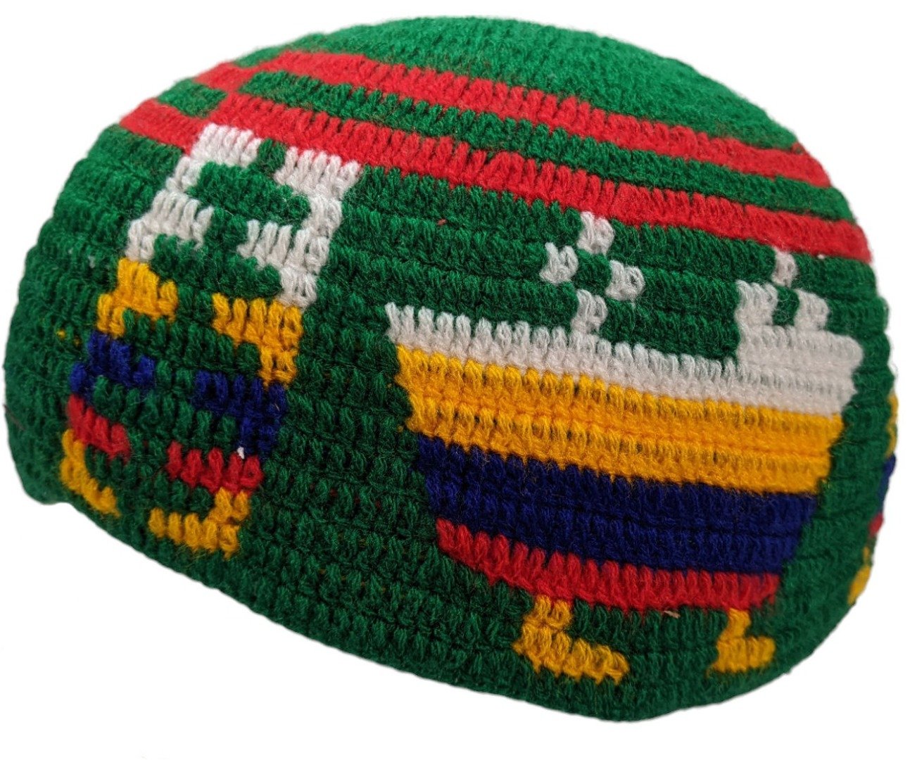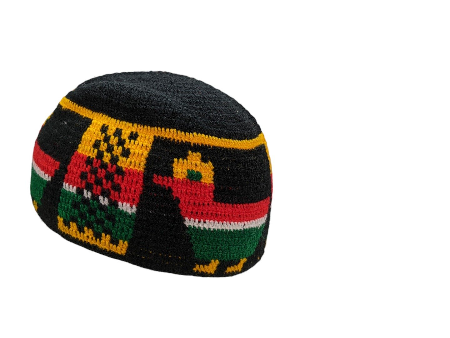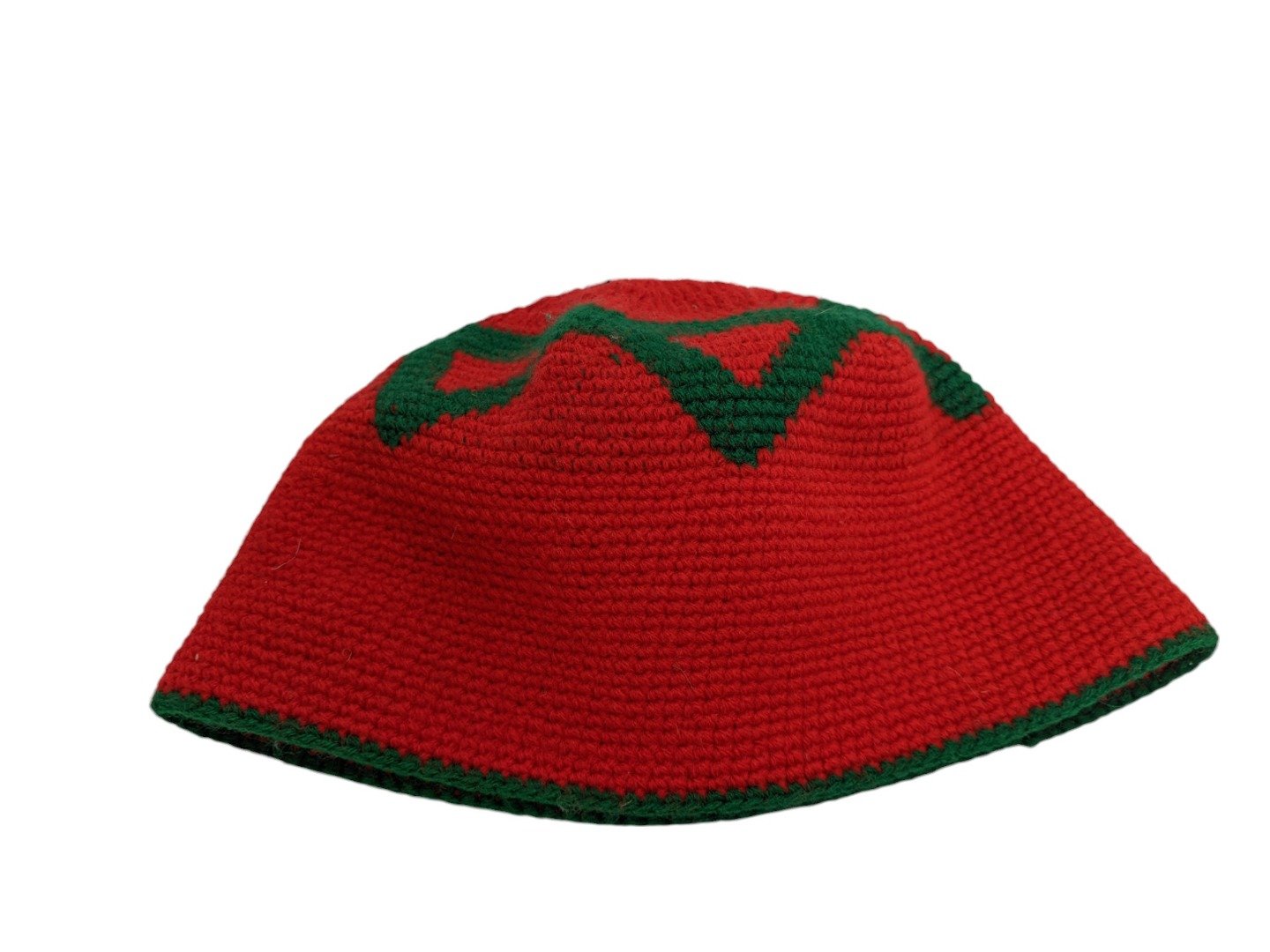 Moroccan kufi hat handcrafted in wool with Amazigh motifs — traditional prayer skull cap made by female artisans using time-honoured techniques.