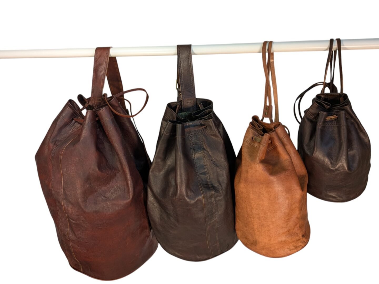 Discover the ultimate travel companion: a Moroccan Leather Duffle Bag that combines the capacity of a weekender with the versatility of a bucket backpack. Meticulously handcrafted in Morocco using organic, traditional techniques.