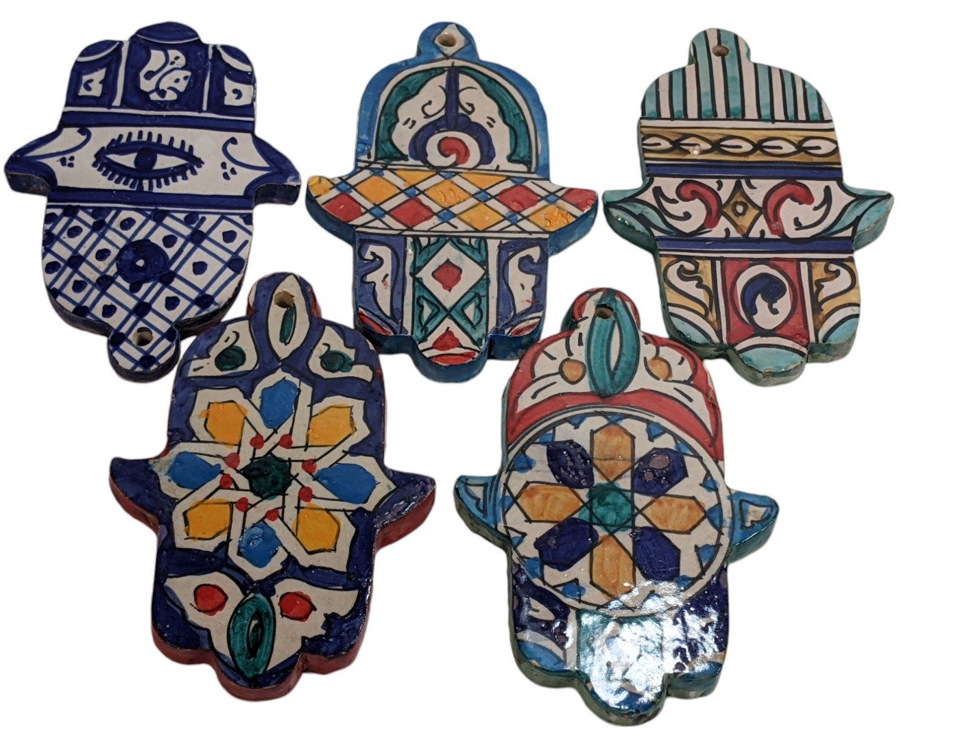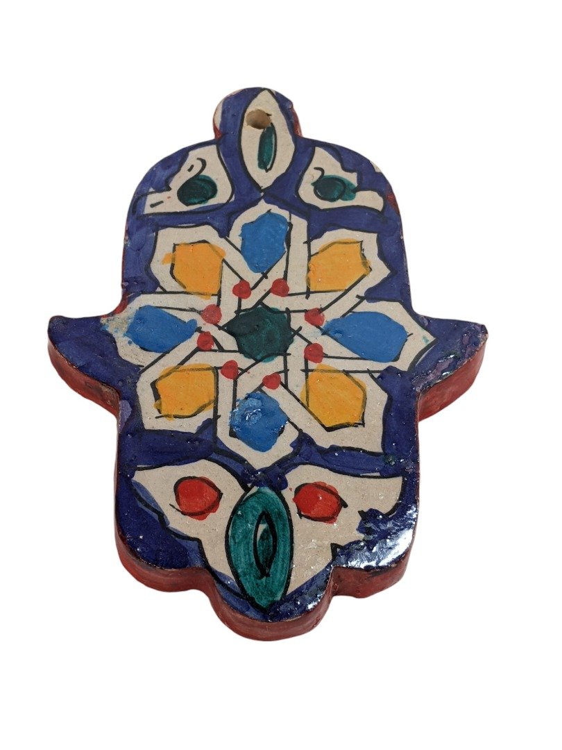 Moroccan Zellige Hand of Fatima –Â a A beautiful handmade, handpainted and hand-glazed Hamsa Personally Sourced in Morocco direct from the maker.