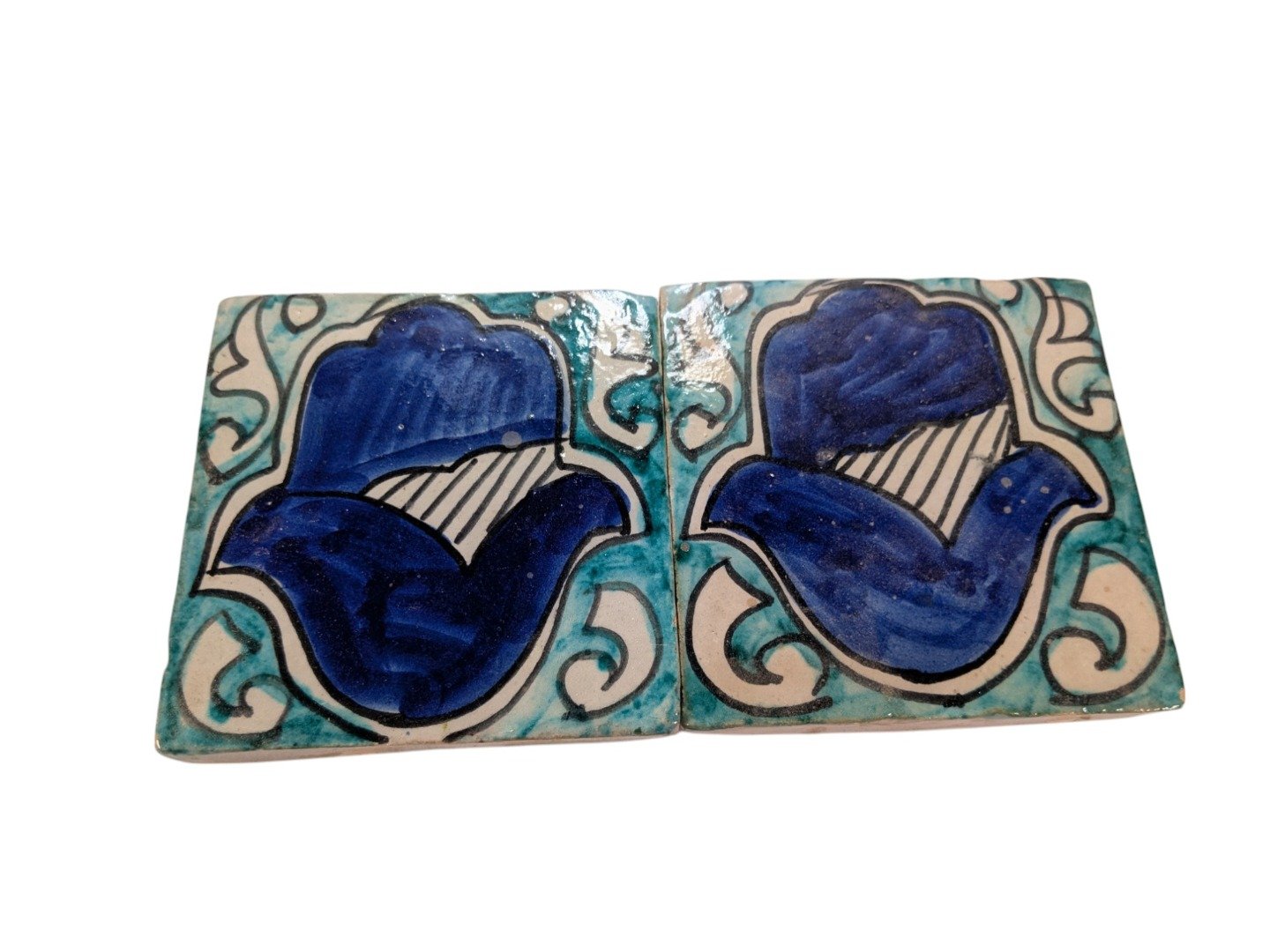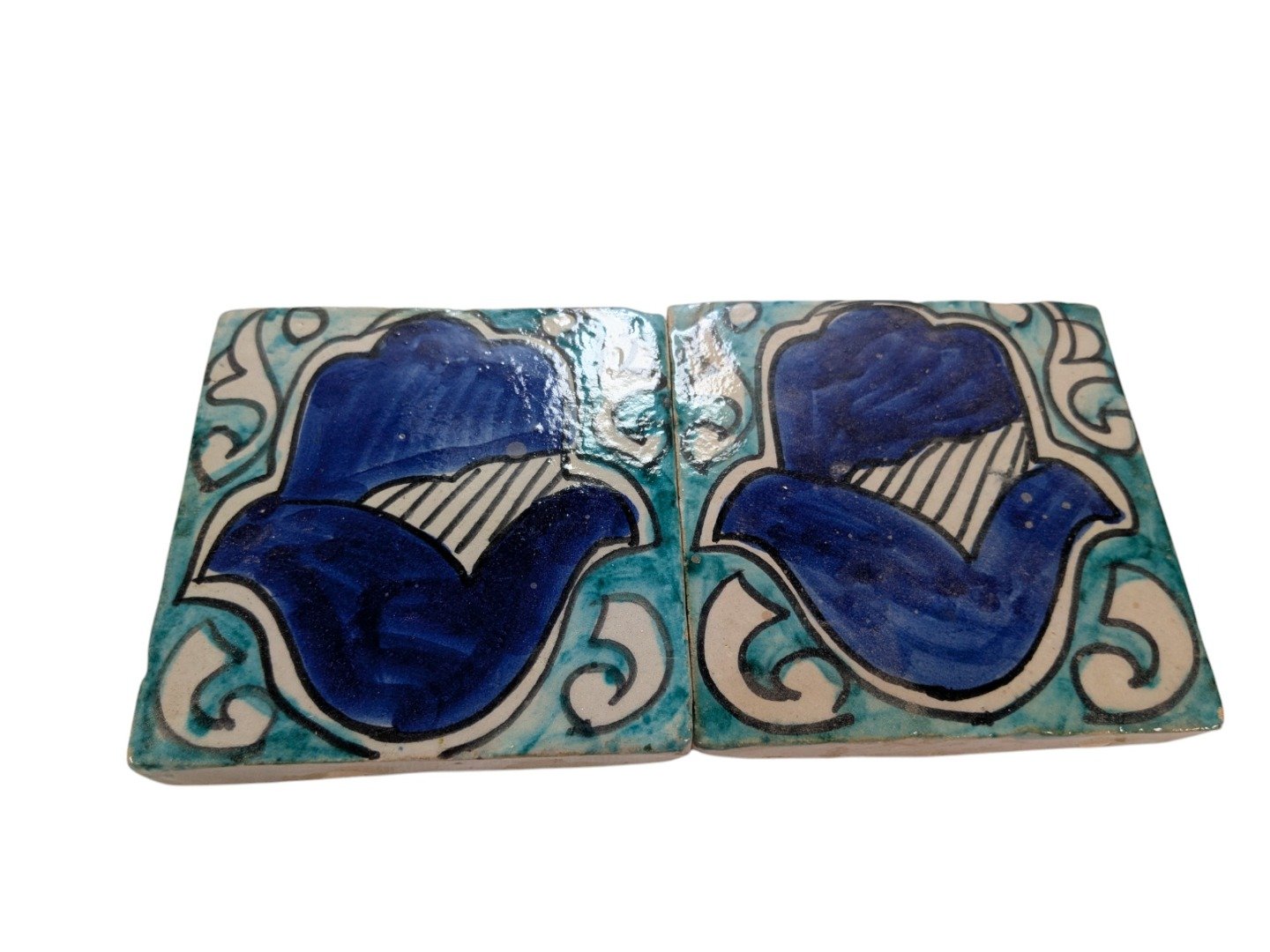 Moroccan Zellige Tiles 2 x beautiful handmade, handpainted and hand-glazed tiles. These are sold in pairs. we have other pairs avaialble and also other kinds of zellige. Please see our other adverts. Can be used internally or externally. Personally Sourced in Morocco direct from the maker. Dimensions of each tile: 10x 10cm. 1.4cm thick // 4″ x 4″. 0.55″ thick Weight unpacked: 285g / 0.63lbs We have many other designs to choose from. See our other adverts. We also sell number zellige ziles and hamsa tiles. Please note that these are genuine hand glazed zellige and as such there can be small blemishes and imprefections in the glaze. This is authentic zellige and is to be expected. BACKGROUND Moroccan Zellige: A Mosaic Masterpiece Zellige is a traditional Moroccan art form that involves creating intricate geometric patterns using glazed ceramic tiles. This technique, rooted in Islamic architecture, has been a hallmark of Moroccan design for centuries. Key Characteristics: Geometric Patterns: Zellige patterns are primarily composed of squares, triangles, stars, and other polygons. These shapes are carefully arranged to create complex, symmetrical designs. Glazed Tiles: The tiles used in zellige are often hand-glazed in a variety of colors, including vibrant hues like blue, green, yellow, and red. Intricate Detail: The precision and skill required to cut, shape, and assemble the tiles contribute to the intricate and visually stunning nature of zellige. Origins and History: Ancient Roots: The origins of zellige can be traced back to ancient Roman mosaic techniques. However, it was in Morocco that this art form truly flourished. Islamic Influence: Islamic art, with its emphasis on geometric patterns and calligraphy, had a profound impact on the development of zellige. Architectural Decor: Zellige was primarily used to decorate the interiors of mosques, palaces, and other important buildings in Morocco. Modern Applications: Today, zellige has gained popularity beyond its traditional architectural context. It is used in a variety of contemporary design applications, including: Interior Design: Zellige tiles are often used to create stunning backsplashes, flooring, and wall coverings in homes and commercial spaces. Home Decor: Zellige-inspired patterns can be found in a variety of home decor items, such as tableware, textiles, and lighting fixtures. Art and Craft: Artists and craftspeople continue to use zellige techniques to create unique and beautiful pieces of art. Zellige’s enduring appeal lies in its ability to combine traditional craftsmanship with modern design aesthetics. Its intricate patterns, vibrant colors, and rich history make it a truly remarkable art form that continues to captivate and inspire.