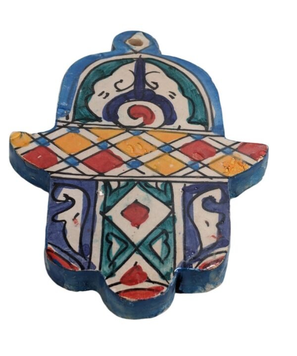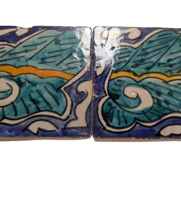 Moroccan Zellige Tiles 2 x beautiful handmade, handpainted and hand-glazed tiles. These are sold in pairs. we have other pairs avaialble and also other kinds of zellige. Please see our other adverts. Can be used internally or externally. Personally Sourced in Morocco direct from the maker. Dimensions of each tile: 10x 10cm. 1.4cm thick // 4″ x 4″. 0.55″ thick Weight unpacked: 285g / 0.63lbs We have many other designs to choose from. See our other adverts. We also sell number zellige ziles and hamsa tiles. Please note that these are genuine hand glazed zellige and as such there can be small blemishes and imprefections in the glaze. This is authentic zellige and is to be expected. BACKGROUND Moroccan Zellige: A Mosaic Masterpiece Zellige is a traditional Moroccan art form that involves creating intricate geometric patterns using glazed ceramic tiles. This technique, rooted in Islamic architecture, has been a hallmark of Moroccan design for centuries. Key Characteristics: Geometric Patterns: Zellige patterns are primarily composed of squares, triangles, stars, and other polygons. These shapes are carefully arranged to create complex, symmetrical designs. Glazed Tiles: The tiles used in zellige are often hand-glazed in a variety of colors, including vibrant hues like blue, green, yellow, and red. Intricate Detail: The precision and skill required to cut, shape, and assemble the tiles contribute to the intricate and visually stunning nature of zellige. Origins and History: Ancient Roots: The origins of zellige can be traced back to ancient Roman mosaic techniques. However, it was in Morocco that this art form truly flourished. Islamic Influence: Islamic art, with its emphasis on geometric patterns and calligraphy, had a profound impact on the development of zellige. Architectural Decor: Zellige was primarily used to decorate the interiors of mosques, palaces, and other important buildings in Morocco. Modern Applications: Today, zellige has gained popularity beyond its traditional architectural context. It is used in a variety of contemporary design applications, including: Interior Design: Zellige tiles are often used to create stunning backsplashes, flooring, and wall coverings in homes and commercial spaces. Home Decor: Zellige-inspired patterns can be found in a variety of home decor items, such as tableware, textiles, and lighting fixtures. Art and Craft: Artists and craftspeople continue to use zellige techniques to create unique and beautiful pieces of art. Zellige’s enduring appeal lies in its ability to combine traditional craftsmanship with modern design aesthetics. Its intricate patterns, vibrant colors, and rich history make it a truly remarkable art form that continues to captivate and inspire.