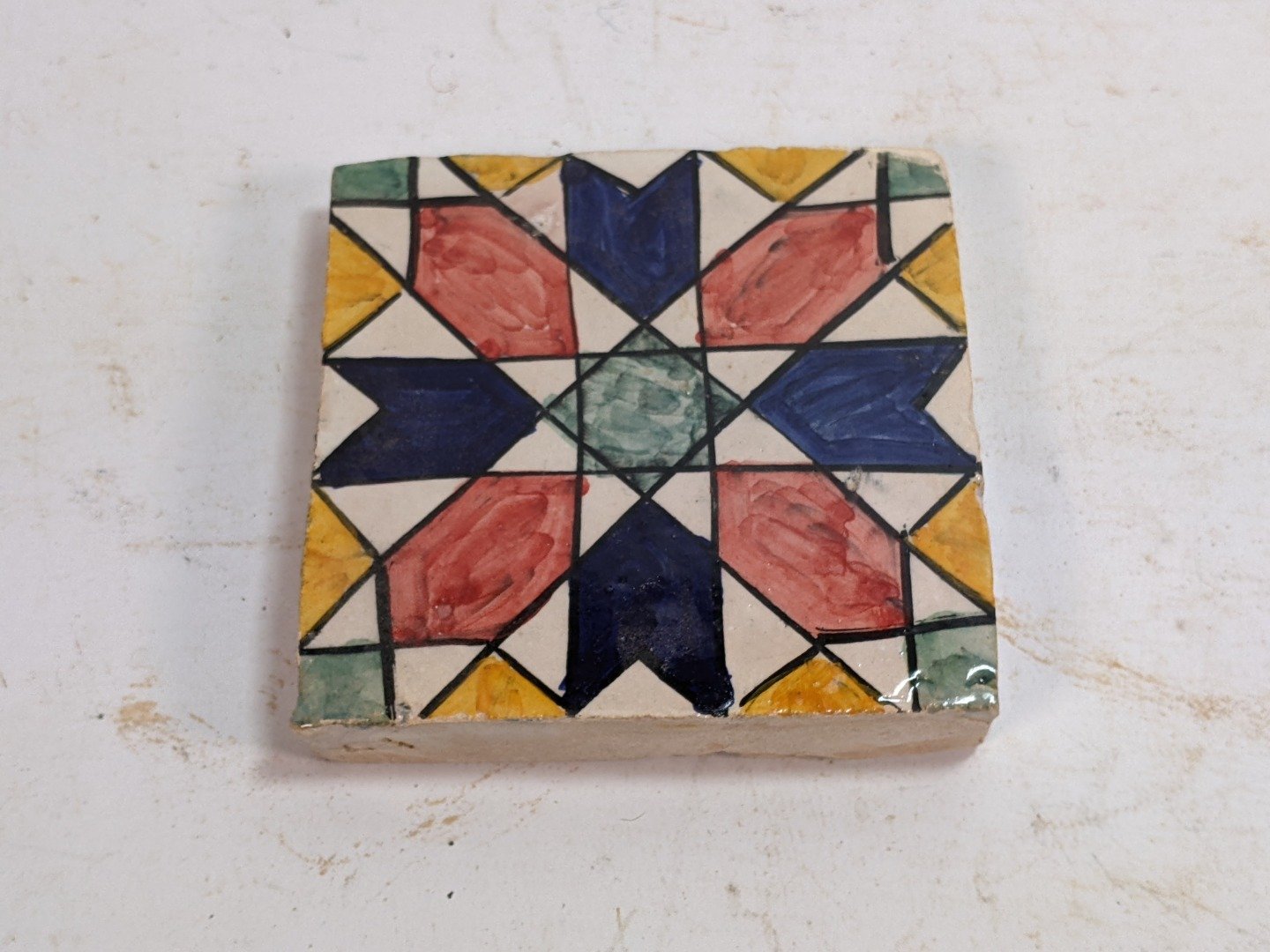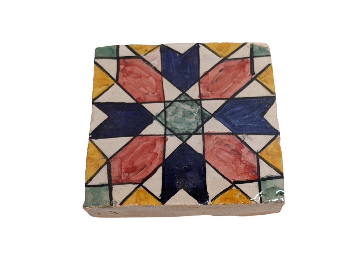 Morocco Zellige Tile -A beautiful handmade, hand painted and hand-glazed Tile Can be used internally or externally. Personally Sourced in Morocco direct from the maker.