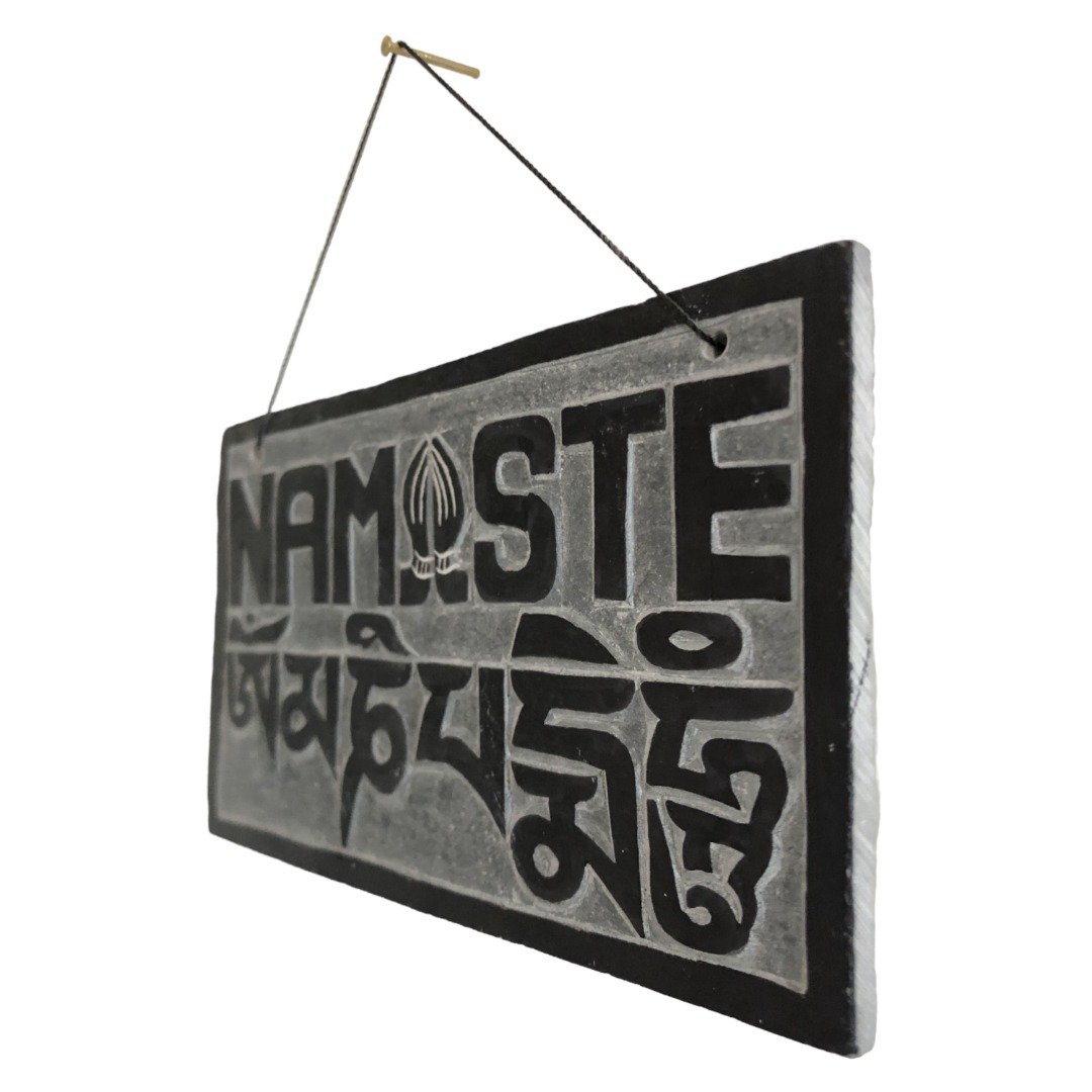namaste stone sign om padme welcome door hanger buddhist hippy