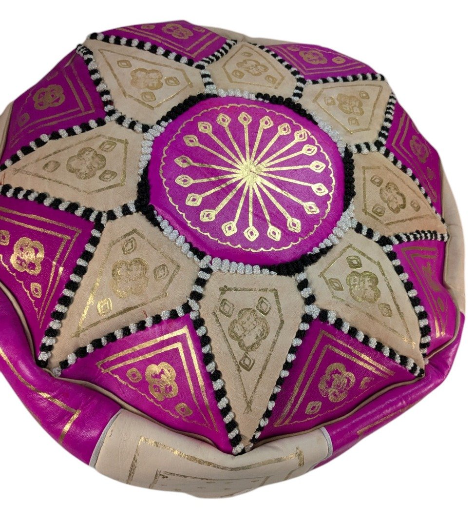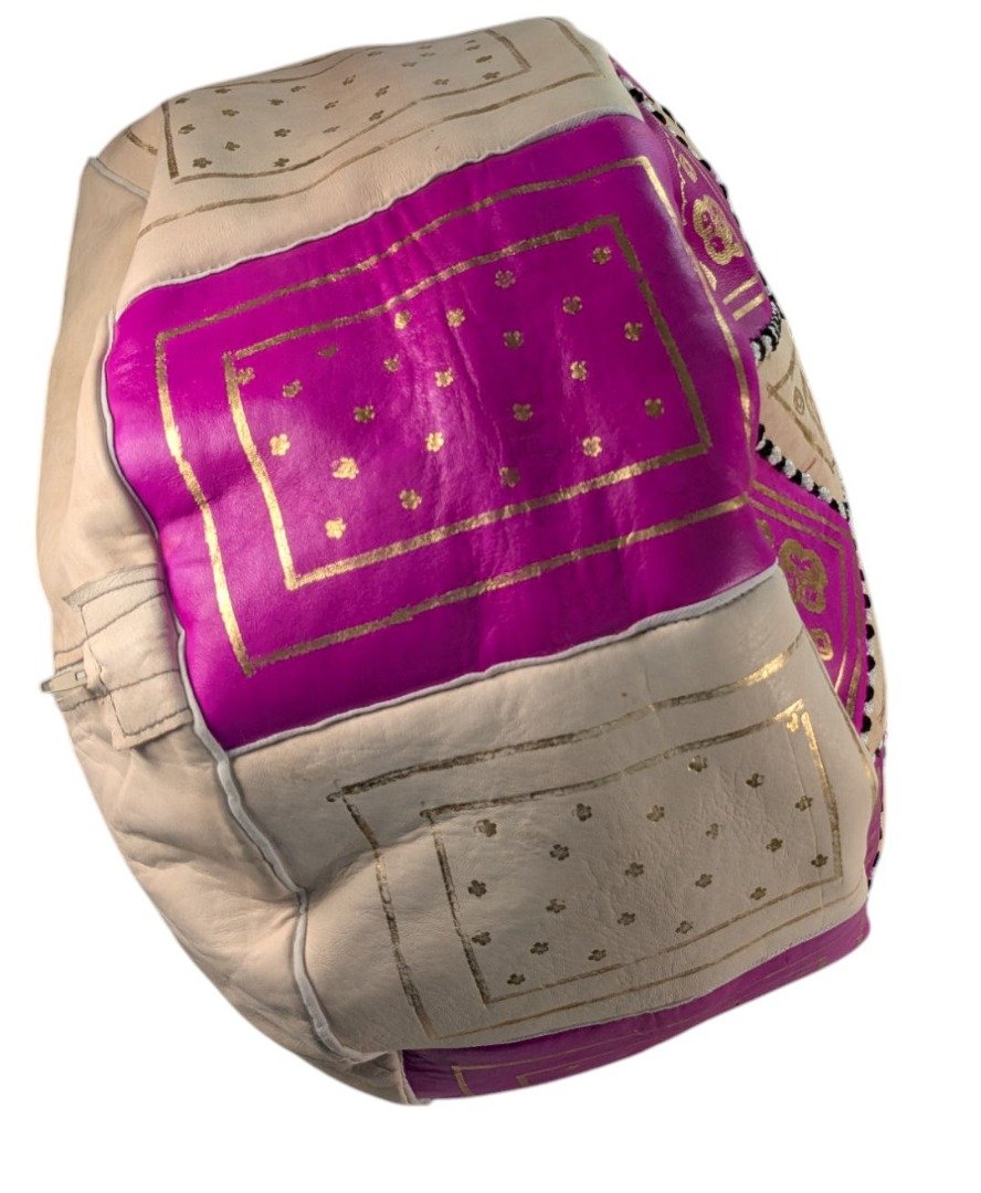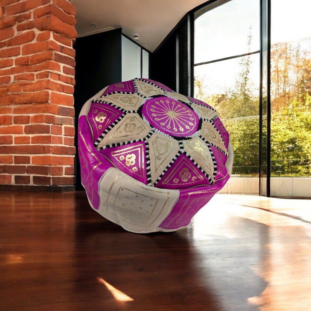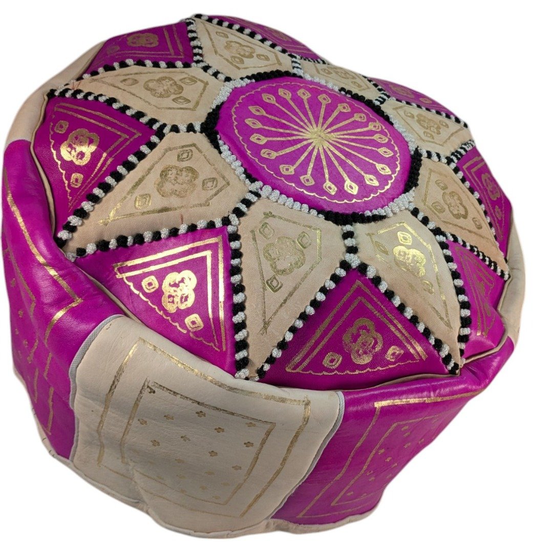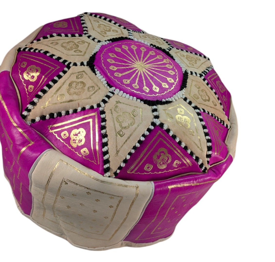 Neon Pink Leather Pouffe | Special Edition Handmade Moroccan
