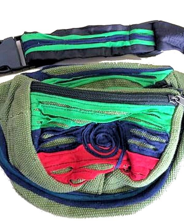 This is a fair trade item sourced from a small fair trade Nepalese outlet in Asia who work directly with the artisans to give a fair and sustainable price for their work. Motif on front may differ. The bag is a must have for festivals, holidays, travelling or to brighten up day to day living! Funky bright designs – they are unique, not mass produced, each one has a different bright and funky design and they are made to a high standard. A unique bag you wont find in the highstreet, makes a fantastic gift for you or someone special Size of main pocket: 21cm wide x 13cm long Comprises: Adjustable strap with study clasps and buckle; Back large zip pocket; 1 front zip pouch; It can be worn over the shoulder or around the waist. Not factory made. Cool, hippy original,. hardy, practical and funky!