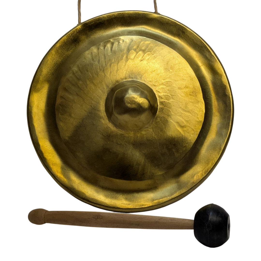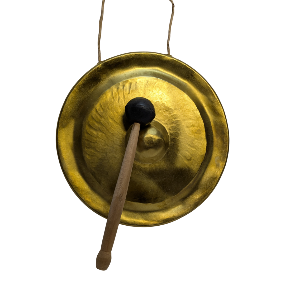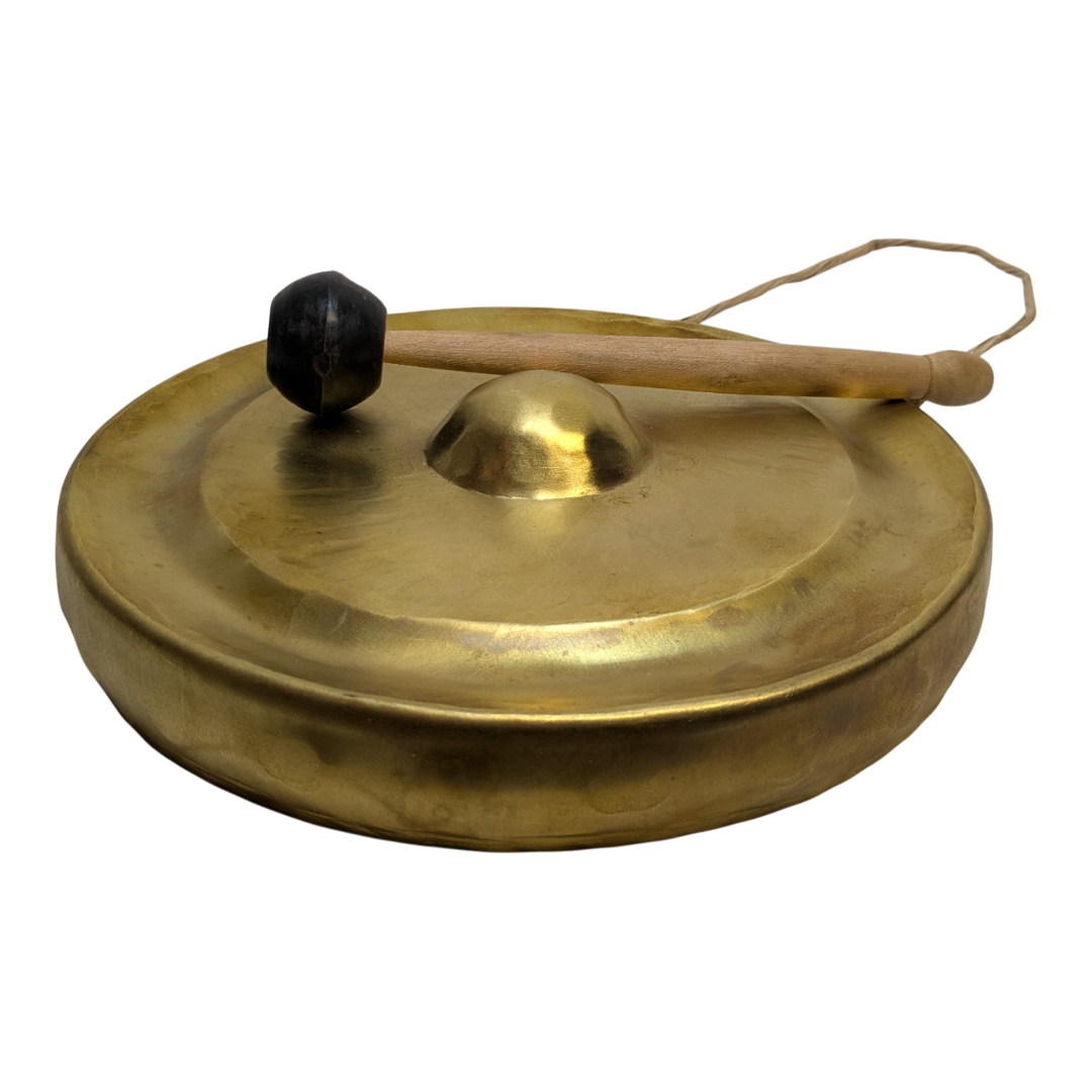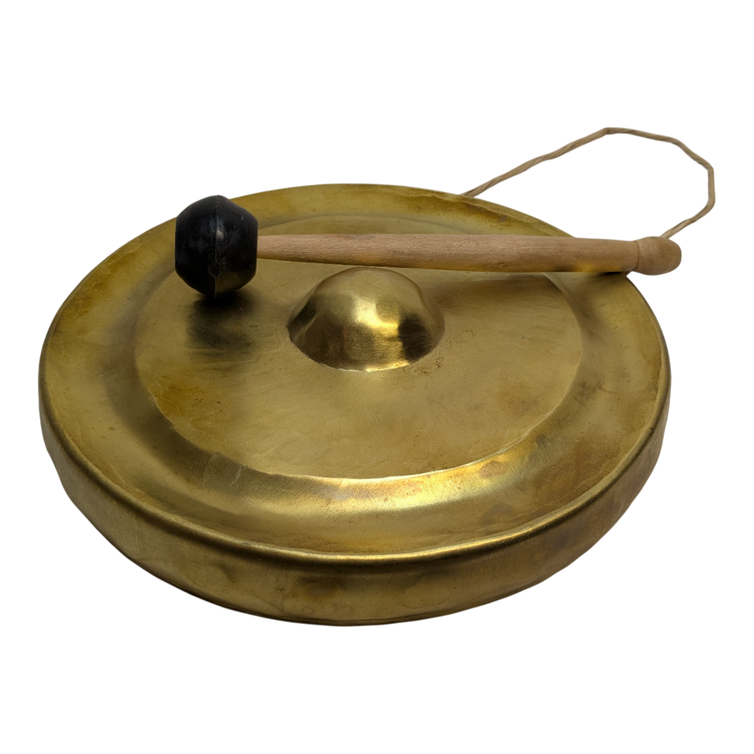 Up for sale is a Brand New, authentic Traditional Vietnamese Brass Gong. Known for their rich, resonant tones, these gongs are a staple of Vietnamese culture and music. This specific 10-inch (25cm) model is beautifully finished with a polished brass surface and a central nipple design for a clear, deep strike. Key Features Condition: Brand New, never used. Material: High-quality solid Brass for a bright, lingering resonance. Dimensions: 10 inches (25cm) diameterthe perfect size for home decor or ritual use. Included Accessories: Comes with a dedicated beater (mallet) to ensure the best sound quality. Handcrafted: Features the traditional hammered aesthetic common in Vietnamese percussion. Versatility & Use Wellness: Perfect for meditation, yoga, or sound healing sessions. Home Decor: A striking conversation piece that fits beautifully with Asian-inspired or eclectic interiors. Functional: Makes an excellent “dinner gong” or a celebratory signal for events. Item Details Diameter: 25cm / 10″ Material: Brass Origin: Vietnam What’s in the box: 1 x Brass Gong, 1 x Beater (Mallet) Up for sale is a Brand New, authentic Traditional Vietnamese Brass Gong. Known for their rich, resonant tones, these gongs are a staple of Vietnamese culture and music. This specific 10-inch (25cm) model is beautifully finished with a polished brass surface and a central nipple design for a clear, deep strike. Material: High-quality solid Brass for a bright, lingering resonance. Dimensions: 10 inches (25cm) diameterthe perfect size for home decor or ritual use. Included Accessories: Comes with a dedicated beater (mallet) to ensure the best sound quality. Functional: Makes an excellent “dinner gong” or a celebratory signal for events.