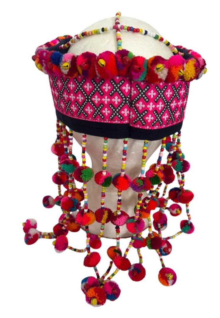 Pink Ethnic Handmade Thai Hmong Tribal Headdress Hat Fair Trade Unique Festival