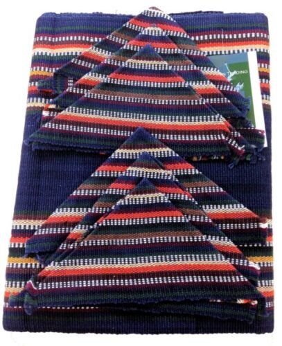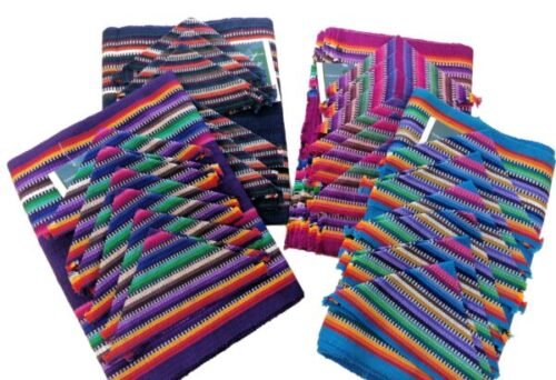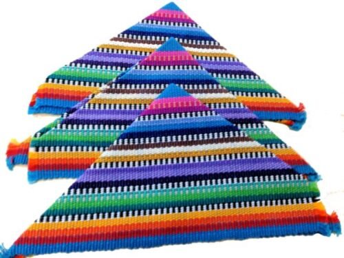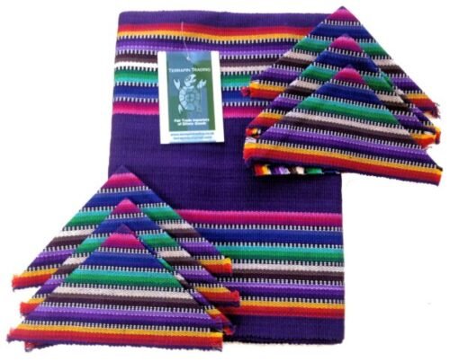These Placemats were bought from a Mayan family in a traditional tribal market in the mountains of Guatemala. The women of the family are skilled weavers, and were proud of their craft work – a fair trade price was paid for their exquisite work, and we have set up an ongoing small business relationship importing small orders of their textiles from this family to Scotland.