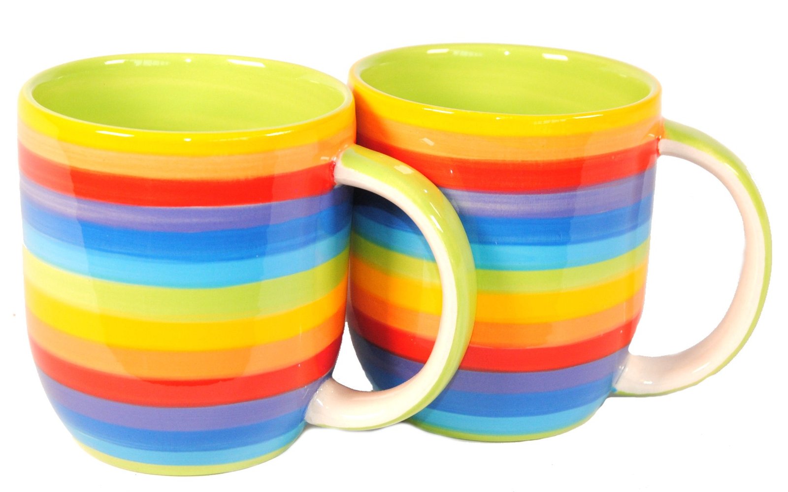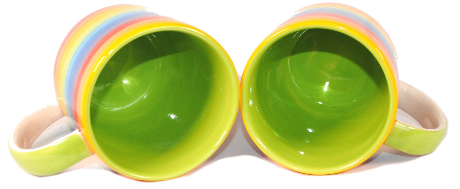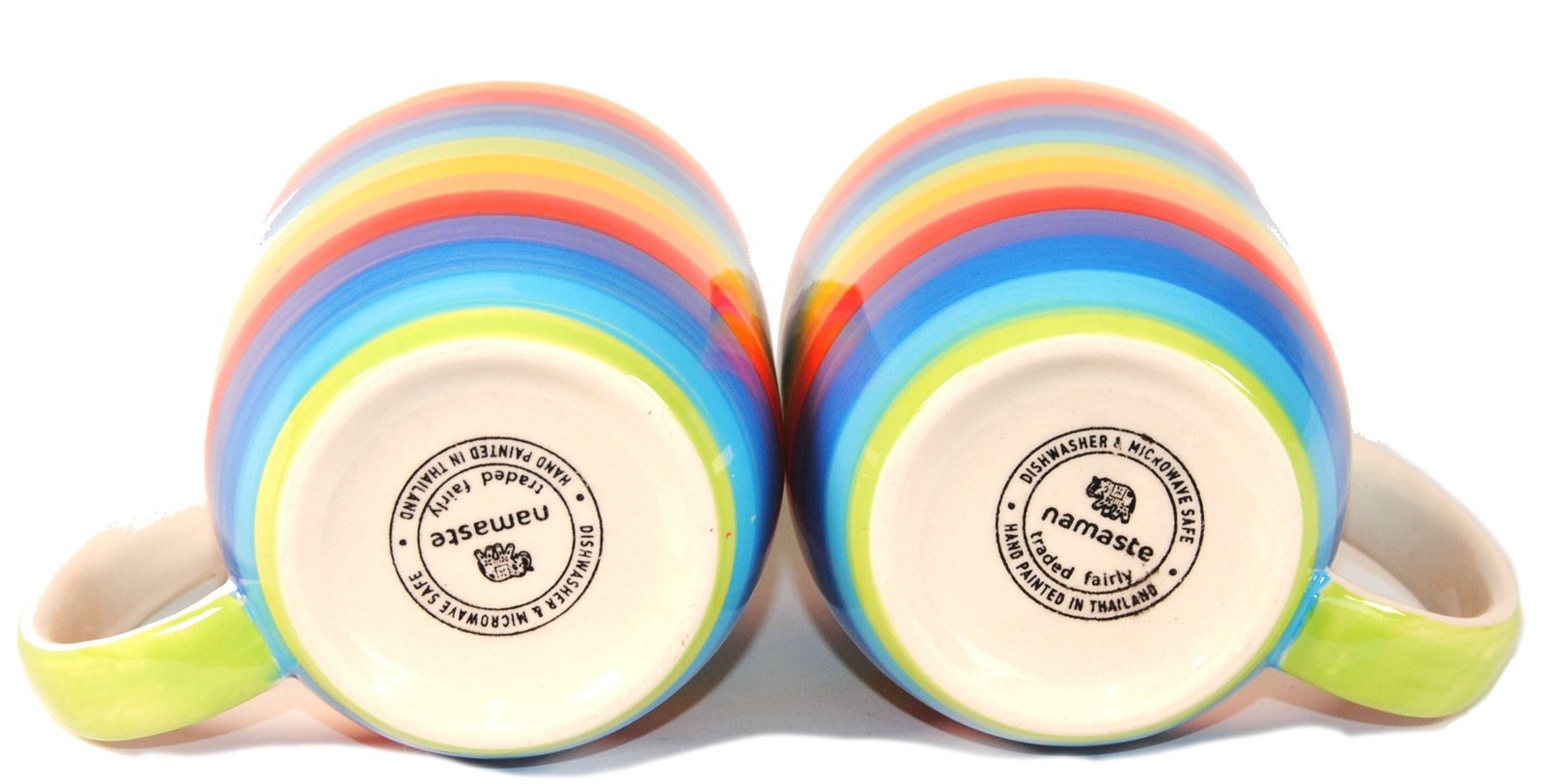 Rainbow Mugs | Dimensions 8.5×8.5x9cm | Come as a pair | Handmade ceramics from Thailand | Fair Trade item | Weight 300g each.