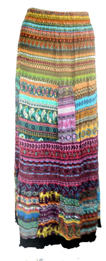 Samba Skirt. Unique, each is different due to handmade nature .Elasticated to stretch from 24″-34″ (fitting size UK8-14) – Length 104cm (41″)