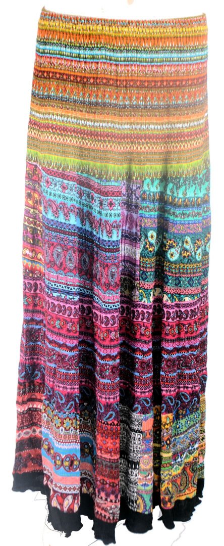 Fair Trade Long Frilly Flamenco Multicoloured Crinkle Skirt.