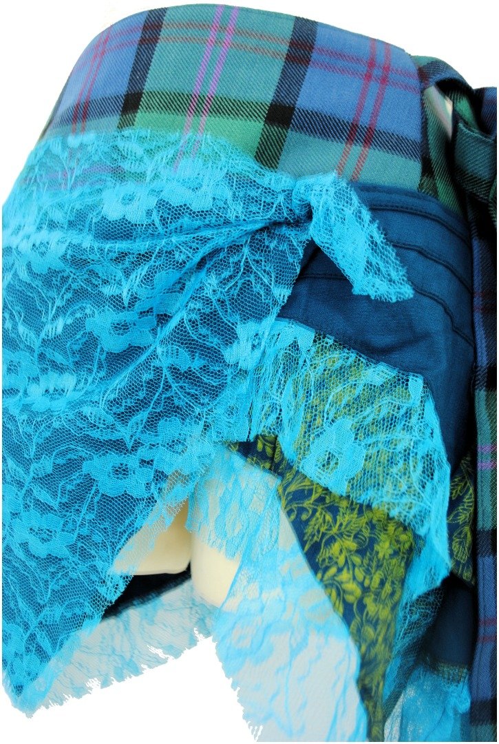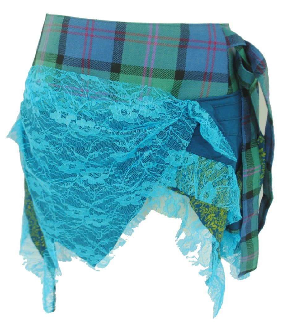Tartan Kilt Skirt Festival Lace Layered Mini Skirt Scottish Wool Design (Medium-Large)